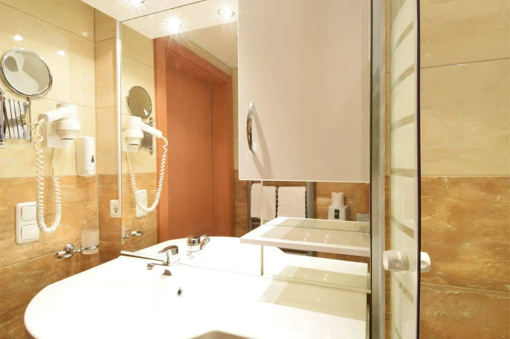 Spend an evening in a nice atmosphere of the bar. You can stop by the restaurant. Free Wi-Fi is available on the territory. Ask for more information when checking in. If you travel by car, there’s a parking zone..The beauty and wellness services: a sauna and a spa center. To book an excursion, consult the tour assistance desk of the hotel. Take your pet with you. Pets are allowed. Accessibility: there is an elevator/lift..At the guests’ disposal, there’s also press and a safe-deposit box.