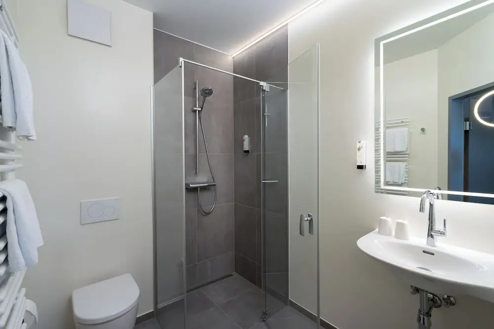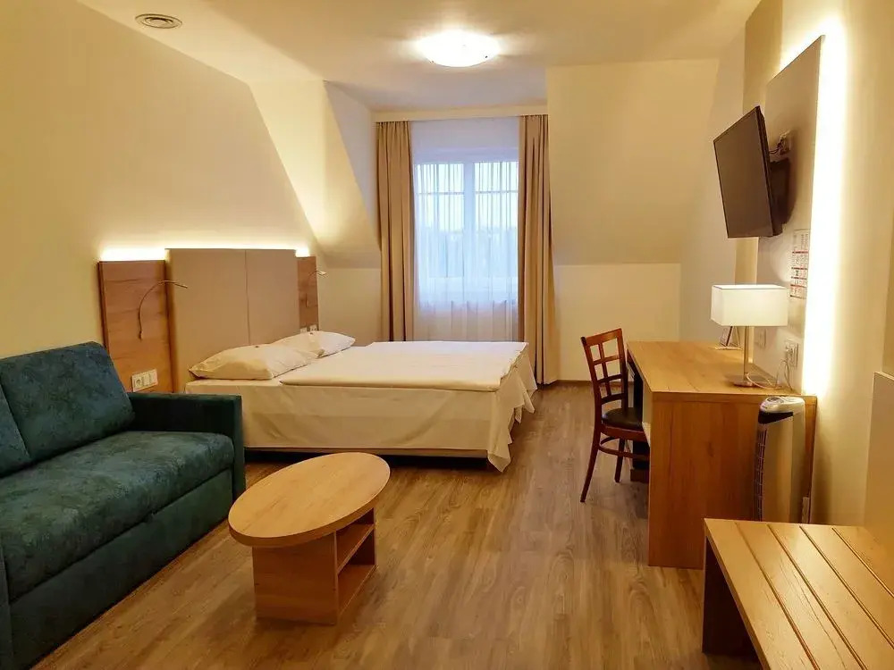 You can stop by the bar. It’s time to have a nice meal! Stop by the restaurant. Free Wi-Fi is available on the territory. Ask for more information when checking in. If you travel by car, there’s a parking zone..The following services are also available for the guests: a sauna, a steam bath and a spa center. Sports fans will be able to enjoy a fitness center and a table tennis area. You won’t be bored as at the hotel you will find a library, a ping-pong area and a barbeque area. For participants of business meetings, there is a conference hall..There are playrooms for children at the hotel. They will be having so much fun that you might have to spend the evening with adults. To book an excursion, consult the tour assistance desk of the hotel. Take your pet with you. Pets are allowed. For the free movement around the city, the hotel offers a transfer for you..Accessible for guests with disabilities: the elevator helps them to go to the highest floors. At the guests’ disposal, there’s also a laundry, dry cleaning, ironing, press, a safe-deposit box and a concierge. The staff of the hotel will be happy to talk to you in English and German.