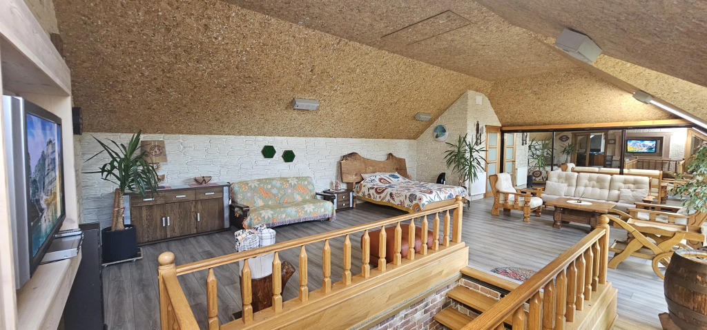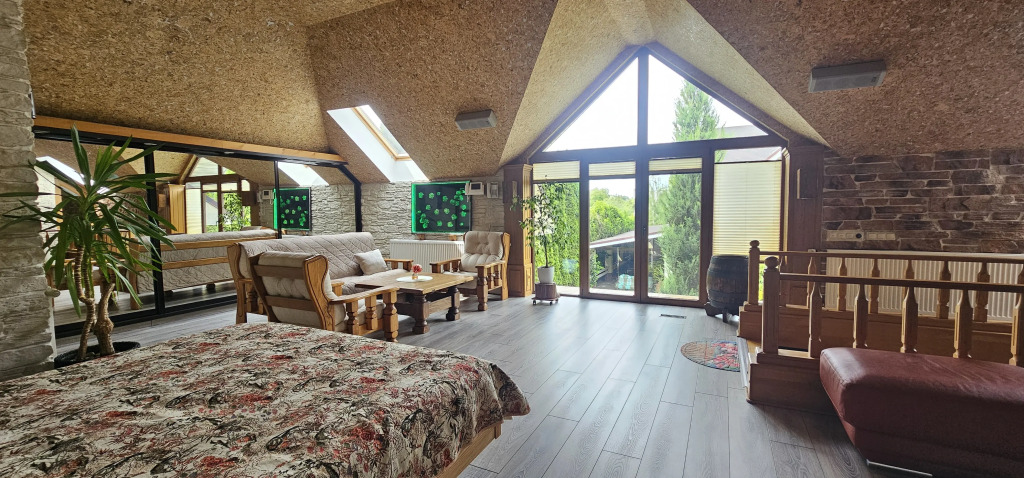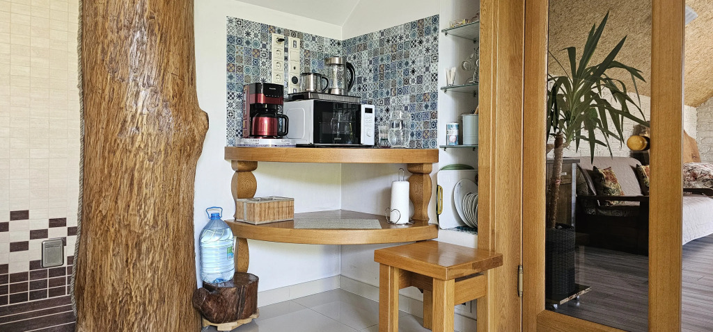 The accommodation is provided by a separate cottage, designed to accommodate up to 6 people. The house has two isolated rooms, two bathrooms with a bidet, a separate shower room, an equipped kitchenette and a dining area. There is a washing machine, hairdryer, steamer, dishes and household appliances, including a coffee machine and an electric kettle with temperature control..There are also upholstered furniture, TV, high-speed Wi-Fi, air conditioning, fan, mosquito nets. There are salt lamps in the bedrooms. The interior is made using natural materials: a cork ceiling and stone trim..There is a green garden with furniture, a barbecue area, swings and sun loungers. There is a guarded parking lot under a canopy. Additional services are available: sauna, Jacuzzi, massage, hookah, fireplace and health club. Board games are also available.