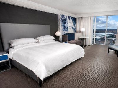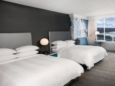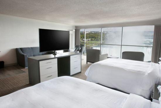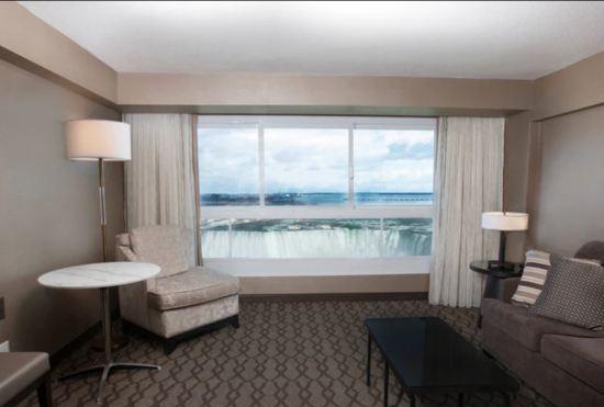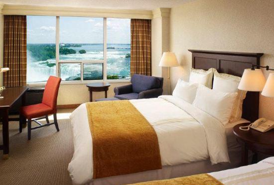 This 4 star hotel is located in the city centre of Niagara Falls. It is close to the Niagara Fallsview Casino. The Hotel has a coffee shop, an indoor swimming pool and a fitness centre/gym. All 407 rooms are equipped with hairdryer, safe, ironing set and air conditioning.