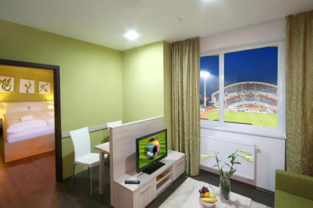 Here’s what you’ll find in the room to have a rest after a long day: a TV. The room equipment depends on its category.
