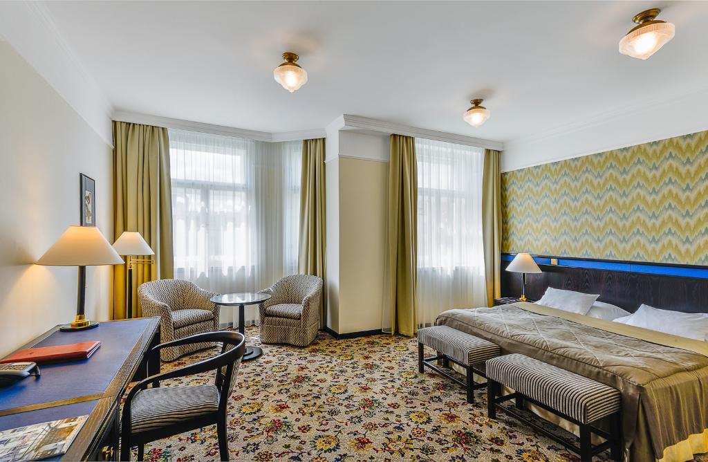 This luxurious hotel boasts a privileged setting in Prague's diplomatic quarter. The hotel is less than 9 kilometers away from Vaclav Havel Prague Airport and within walking distance of many Hradcany and Mala Strana attractions, including Prague Castle and the Saint Vitus Cathedral, Petrin Hill and its lookout tower, and the Franz Kafka Museum. The Charles Bridge is a 15-minute walk from the hotel, and there is a tram stop right outside the hotel, providing easy access to other city sights.The spacious rooms are furnished and equipped. The in-house restaurant serves exquisite local dishes in a cosy, intimate atmosphere, all for a wonderful sightseeing holiday or dynamic business trip to Prague.
