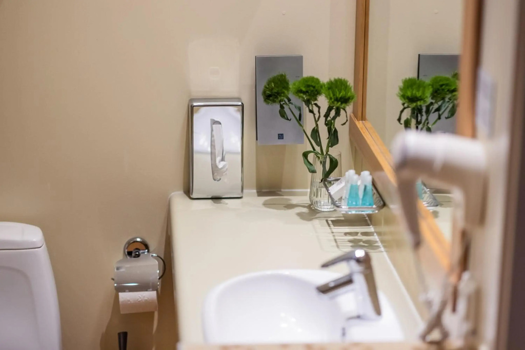 Here’s what you’ll find in the room to have a rest after a long day: a TV, a mini-bar, a bathrobe and slippers. The room equipment depends on its category.