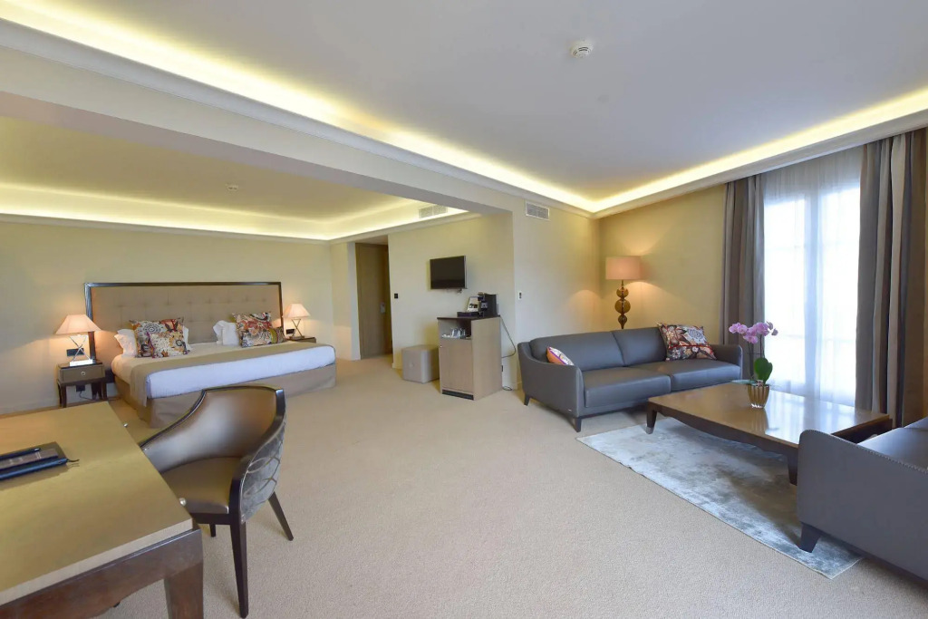 In the room, for you, there is a TV and a mini-bar. The room equipment depends on its category.