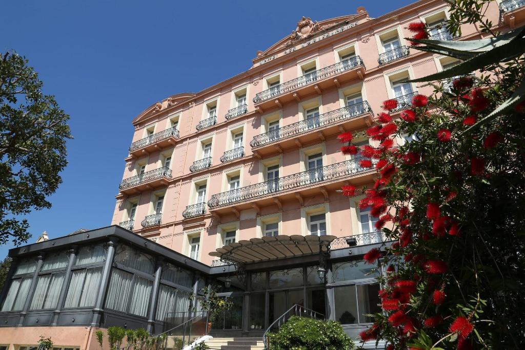 Property Location A stay at Grand Hotel des Ambassadeurs places you in the heart of Menton, a 1-minute drive from Plage des Sablettes and 10 minutes from Japanese Garden. This hotel is 6.3 mi (10.1 km) from Casino Monte Carlo and 6.7 mi (10.8 km) from Monaco Harbour.Rooms Make yourself at home in one of the 30 air-conditioned rooms featuring flat-screen televisions. Cable television is provided for your entertainment. Private bathrooms have complimentary toiletries and hair dryers. Conveniences include complimentary bottled water and blackout drapes/curtains, and housekeeping is provided on request.Amenities Take in the views from a terrace and make use of amenities such as complimentary wireless Internet access and concierge services.Dining Wrap up your day with a drink at the bar/lounge. Local cuisine breakfasts are available daily from 7:30 AM to 10 AM for a fee.Business, Other Amenities Featured amenities include a business center, complimentary newspapers in the lobby, and a 24-hour front desk. This hotel has 4 meeting rooms available for events.