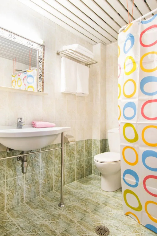 In the room, there is a shower and a TV. The room equipment depends on its category.