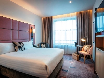 This 4 star hotel is located in the city centre of Dublin and was established in 2004. It is close to the EPIC Museum and the nearest station is Mayor Square/NCI Luas Stop. The Hotel has a restaurant, a bar, a conference room, an indoor swimming pool and a fitness centre/gym. All 209 rooms are equipped with minibar, hairdryer, safe, ironing set and air conditioning.