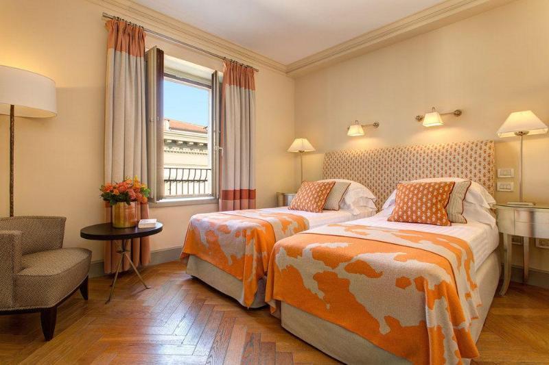 The superb 5 star luxury hotel Savoy is the best choice to have the opportunity to enjoy the true experience of the elegant city of Florence. The hotel is in Piazza della Repubblica, a stone thrown from the Duomo and a short walk from the Uffizi Gallery and Ponte Vecchio and the stunning Piazza della Signoria. Each of the 102 rooms of the Savoy is decorated with neutral tones with a contemporary touch and a meticulous attention to the choice of ceramics, artworks and fabrics. The comfortable beds are adorned by crisp and fresh linen sheets and floors are parquet. A particular attention is reserved to bathrooms, in white or brown marbles, with their special mosaics. Throughout the hotel walls quirky prints of shoes are the most charming reminder to the Florentine artisans who have made this city famous all over the world. A two Michelin starred chef is the ace in the hole of the L'Incontro restaurant, another reason to choose Hotel Savoy. A terrific fitness centre will give clients the possibility to keep fit even away from home. Hotel Savoy is the perfect starting point to discover the city of Florence.