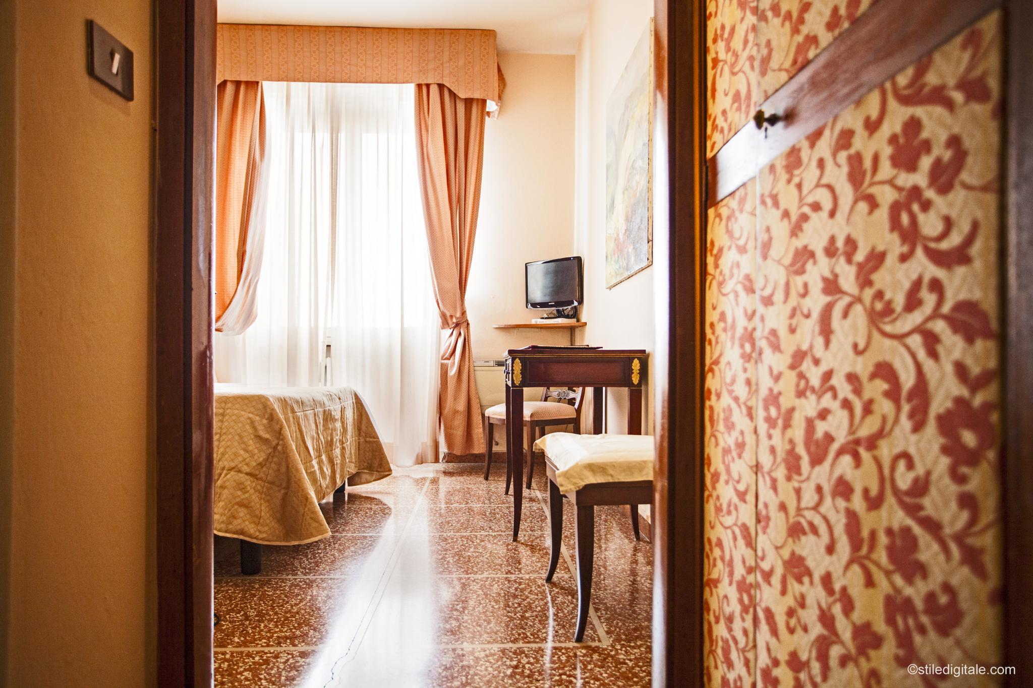 This hotel is situated at the heart of the city of Pisa. The hotel is located just a short distance (100 Meters) away from the main train station, lying just a 20 minutes' walking distance from the famous Leaning Tower of Pisa. Guests will find themselves in a great location from which to explore the area. Links to the public transport network, as well as a host of shopping, entertainment and dining venues, are to be found nearby. This wonderful hotel welcomes guests with warm hospitality and charm. The guest rooms are elegantly appointed, and are well equipped with modern amenities. The hotel offers a host of facilities and services, meeting the needs of every type of traveller.