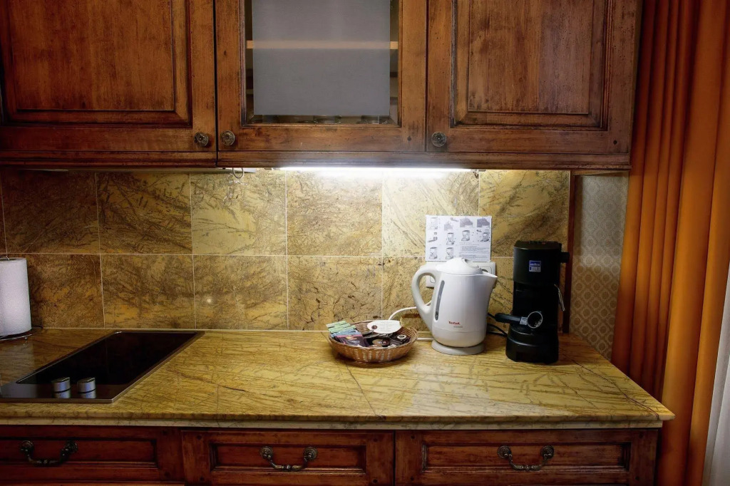 The room is warmly decorated and has everything you need to have a rest after a long eventful day. There is a TV and a mini-bar. The room equipment depends on its category.
