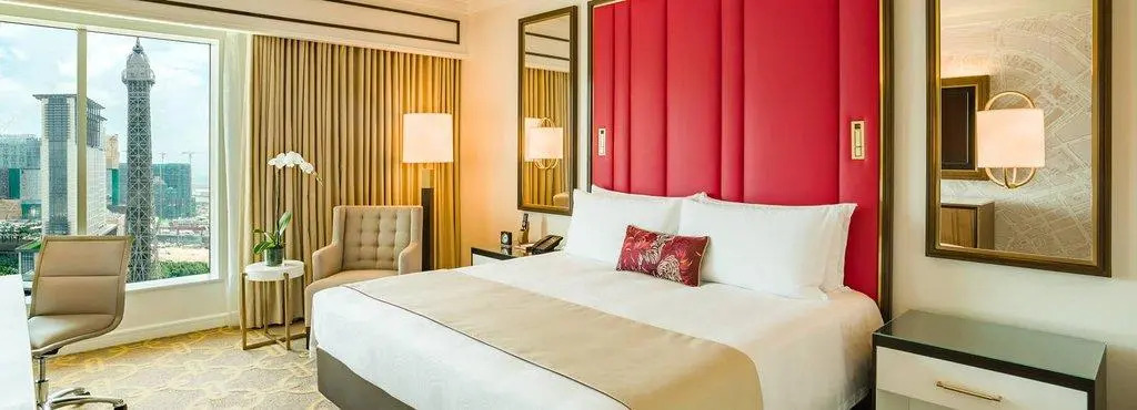 Sophisticated but very comfortable hotel «The Parisian Macao» is located in Cotai. This hotel is located in the center of the city. Before going to bed, you can walk around the main landmarks of the city. You can take a walk and explore the neighbourhood area of the hotel — Venetian Macao Casino, Cotai Arena and Mandarin's House.