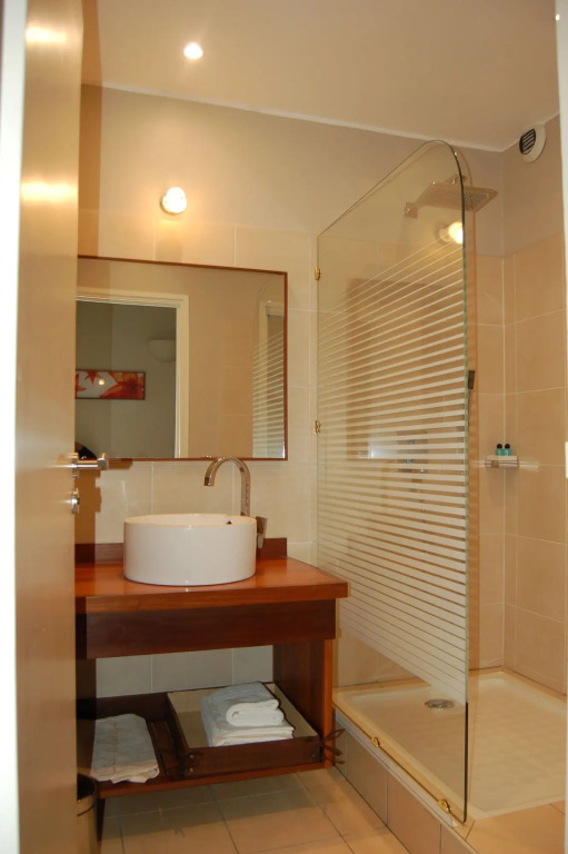 In the room, there is a TV and a mini-bar. The room equipment depends on its category.