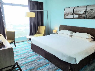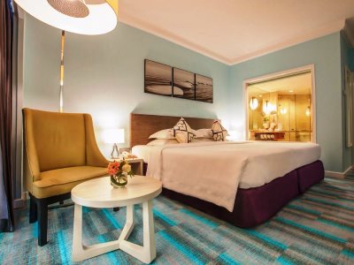 This 5 star hotel is located within the city of Johor Bahru. It is 20.0 Km from the Legoland, JPO and the nearest station is Near by thistle. The Hotel has a coffee shop, an outdoor swimming pool and a fitness centre/gym. All 381 rooms are equipped with minibar, hairdryer, safe, ironing set and air conditioning.