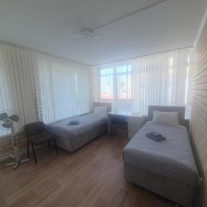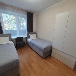 Located in the center of Cheboksary, close to the bay, where you can walk, see the sights and enjoy the views of the Volga. Located in a three-storey townhouse. Home comfort, there is a fenced area where you can barbecue, sit in the fresh air, and do exercises. Kitchens, refrigerators, and washing machines are at common disposal.