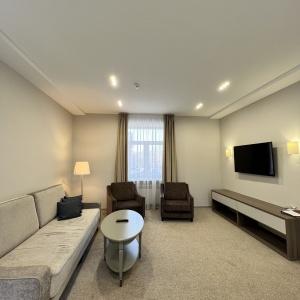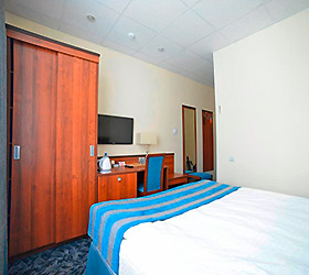 The hotel offers 64 rooms of various categories. Each room has bathroom with shower cubicle or tub, air conditioning, long-distance and international telephone, TV, and fridge.