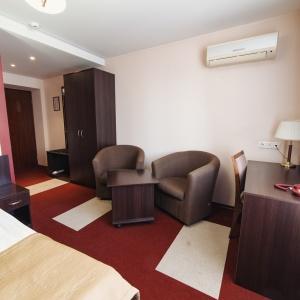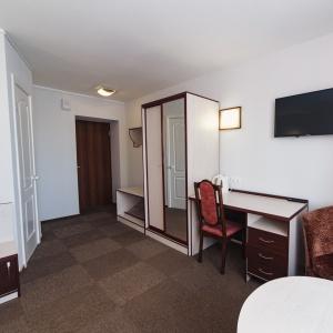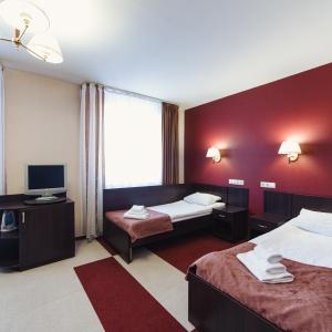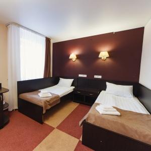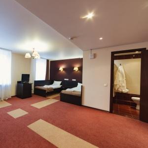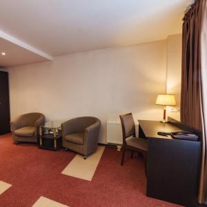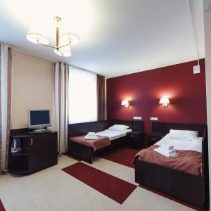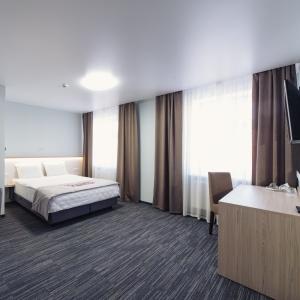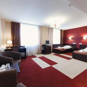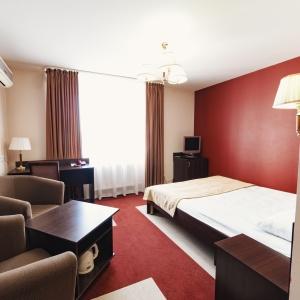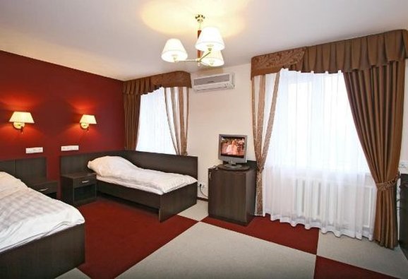 The hotel offers accommodation in 66 rooms of different categories: two-room apartment, including a living room, a bedroom and a bathroom with Jacuzzi, studios and superior rooms and standard one-bed, twin bed and double bed rooms. Every room features long-distance and international telephone lines, free high-speed internet access (Wi-Fi), a refrigerator, mini-bar in the hotel rooms. Some rooms have air-conditioning, electric kettles. There are hair-driers and bathroom accessories in all bathrooms.