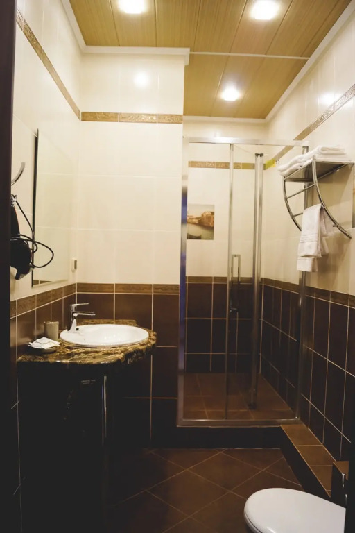 Taste the local cuisine and have a rest in the restaurant. If you can’t live without coffee, drop by the cafe. Want to be always on-line? Wi-Fi is available. Specially for tourists who travel by car, there’s a free parking zone..The beauty and wellness services: a sauna and a bathhouse. At the guests’ disposal, there’s also private check-in and check-out.