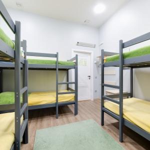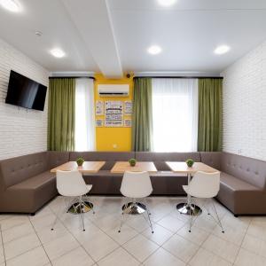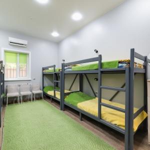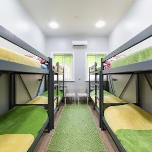 Beds in dormitories, women's and men's rooms with a capacity of 6 to 8 people are available for booking. The rooms are equipped with comfortable beds, air conditioning, an individual lamp, a desk, chairs, and a shower room and a bathroom are located on the floor. Guests can use the shared kitchen with all necessary appliances for cooking.