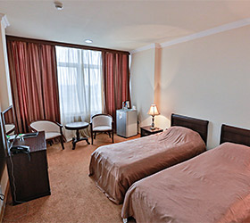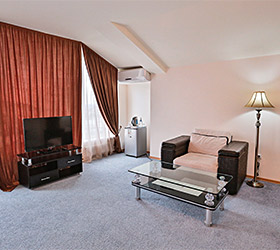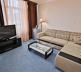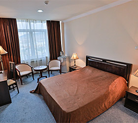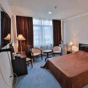 The hotel has a restaurant with 200 seats, serving European and Caucasian dishes. Lobby bar, conference hall, banquette hall, parking, laundry, fitness hall and day spa (hammam, infra-red sauna, swimming pool, massage, hairdresser's salon) are all at the guests' disposal.
