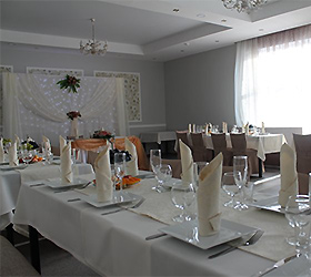 The "Aquilon" hotel complex provides several dinning options, such as a restourant, a banquet halls and conference halls. The "Akvilon" restourant is located on the first floor of the hotel, serving up European cuisine.