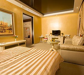 Accommodation is available in 25 rooms of Standard and Suite categories, all featuring comfortable furniture, bathrooms, air conditioning, fridges, and TVs. Every morning guests are offered breakfast, which can also be served in the room. During the day the hotel restaurant serves courses of Caucasian and European cuisine. The hotel provides laundry and ironing services. The whole hotel territory has Wi-Fi Internet coverage. Driving guests can make use of the hotel's parking lot.