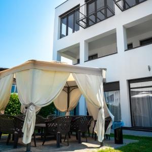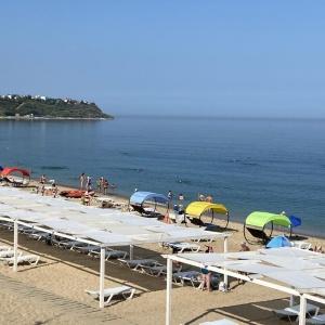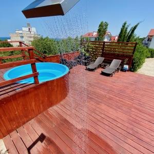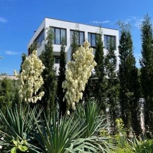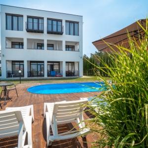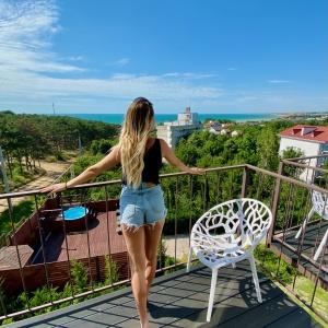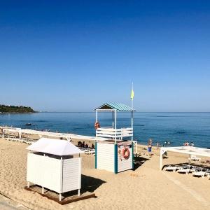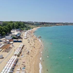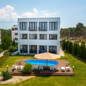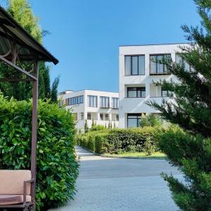 The hotel is located 400 meters from the sandy beach of Uchkuevka. Includes 4 buildings: 3 white cubic and one in a classic style. Between the second and third buildings there is a swimming pool.