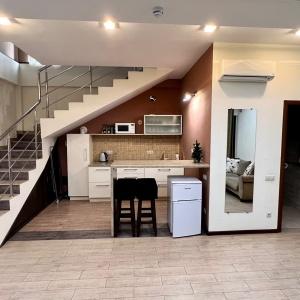 Modern design combined with comfort and warm atmosphere, architectural delights of stairwells with a seating area on each floor will not leave you indifferent and dispose to a good rest. At your disposal is a well-groomed yard and a barbecue area that will allow you to relax with all your heart. The air-conditioned rooms are equipped with a flat-screen TV and refrigerator. The private bathroom comes with a hairdryer and toiletries. Most rooms have a balcony.