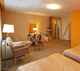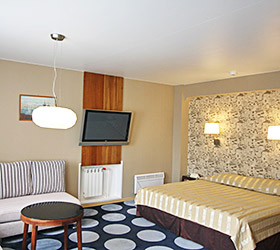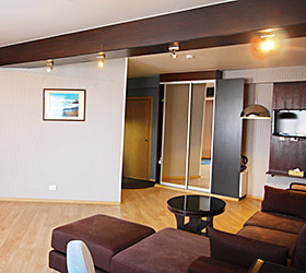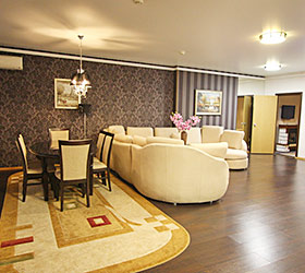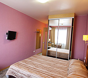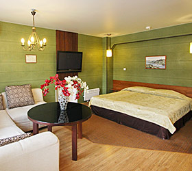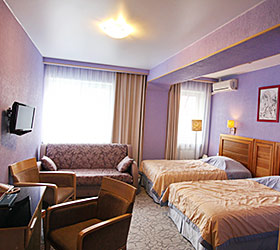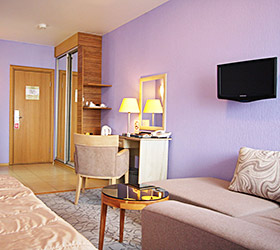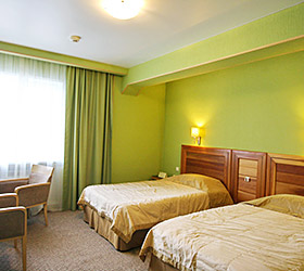 The hotel offers 111 rooms of various categories, all meeting international standards and unique design with well-balanced color pallets. Each room includes modern conveniences required for enjoyable stay - double bed or twin beds, en-suite bathroom with shower cubicle and toiletry accessories, fridge, tea-pot, tableware, mini bar, sliding wardrobe, desk, chair, lamp, LCD TV, telephone, Wi-Fi Internet, key-card access system. The suites additionally offer - plasma panels in each room, working area and negotiation table.