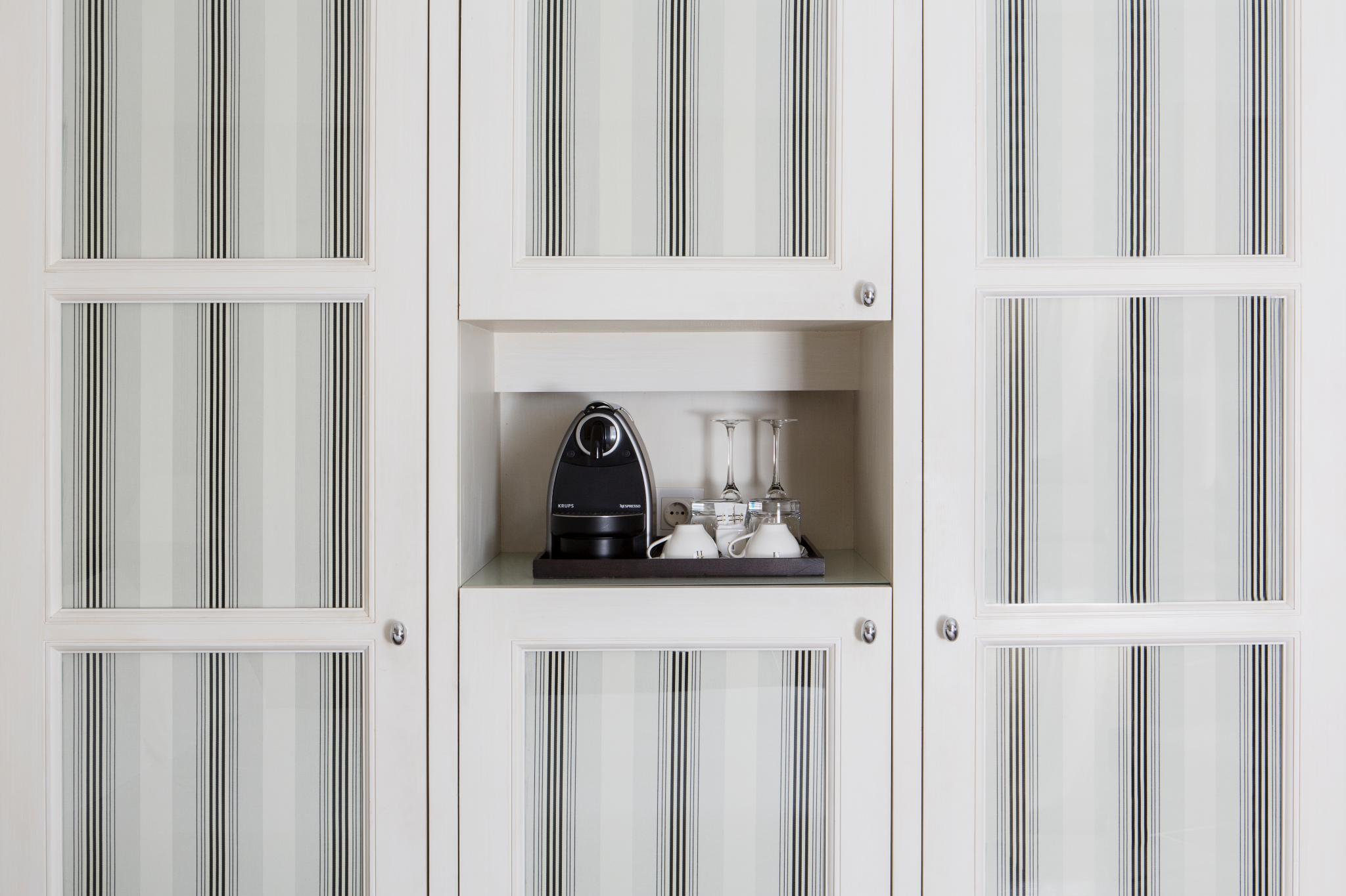 The apartments are located in other building in front of the hotel.