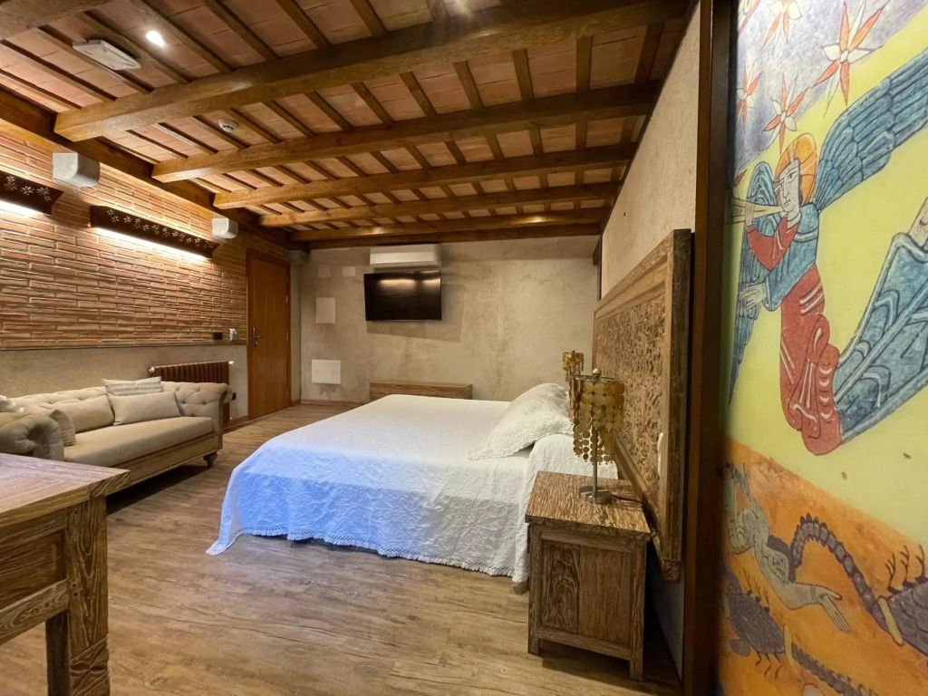 The room is warmly decorated and has everything you need to have a rest after a long eventful day. There is a shower, a TV and a mini-bar. The room equipment depends on its category.