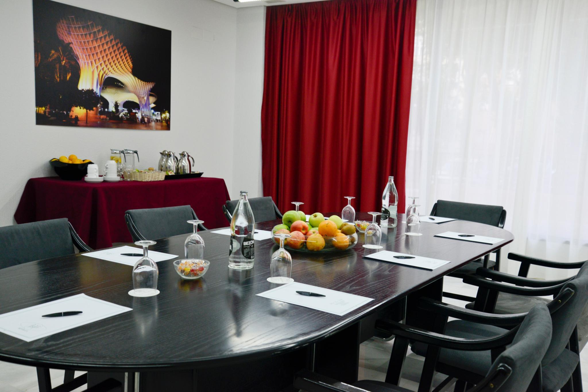 Our Hotel has 102 spacious rooms from 40 to 60 m2, equipped with full bathroom. Also with 4 meeting rooms and underground car parking. Our hotel is perfect for business guests and for families wanting to visit the city center. This is possible thanks to our connections with the city center (7 kms. away from the hotel). Behind our building there is located bus stop number 27, going to the historic area in the center, and 5 mins. walking from the hotel you have bus stop number 28, that goes to Prado de San Sebastian. 700 mts. away you have FIBES train stop that connects with different points in town and the surroundings in Seville.