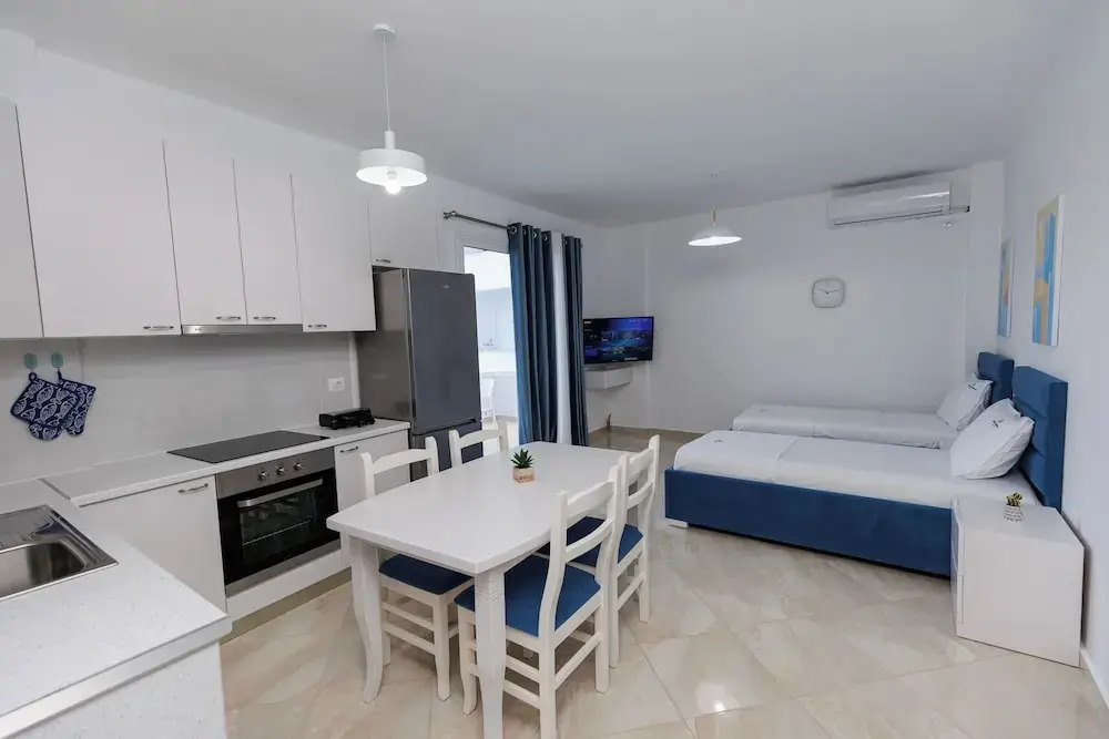«Captain's Residence» is located in Ksamil. This apartment hotel is located in the city center. In the morning, have a cup of coffee while looking at the city from the window. You can take a walk and explore the neighbourhood area of the apartment hotel — Barbati Beach, Acharavi Beach and Dassia Beach.