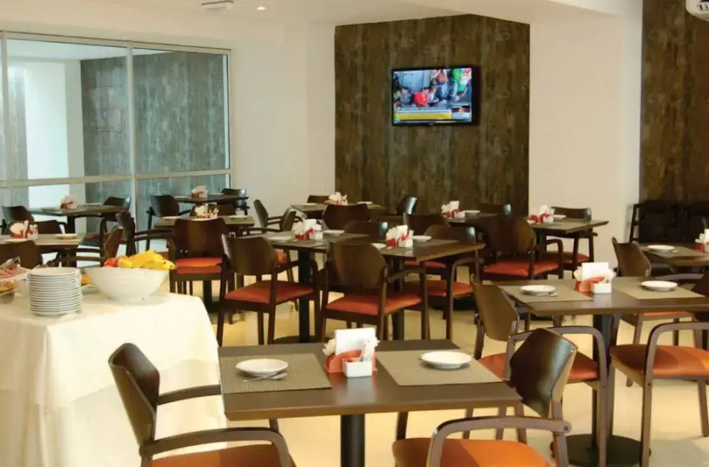 Spend an evening in a nice atmosphere of the bar. You can stop by the restaurant. Free Wi-Fi is available on the territory. Ask for more information when checking in. Specially for tourists who travel by car, there’s a parking zone..Guests who love doing sports will be able to enjoy a fitness center. For business meetings, there is a business center. The tour assistance desk of the hotel will help you book an excursion. Accessible for guests with disabilities: the elevator helps them to go to the highest floors..At the guests’ disposal, there’s also a laundry, dry cleaning, ironing, press and a safe-deposit box. The staff of the hotel will be happy to talk to you in English and Spanish.
