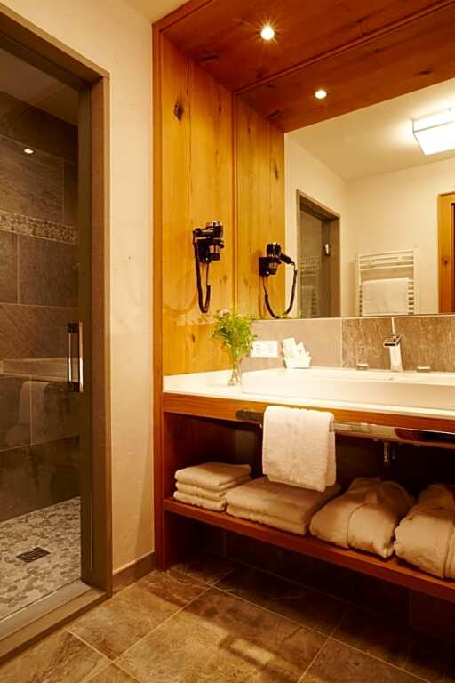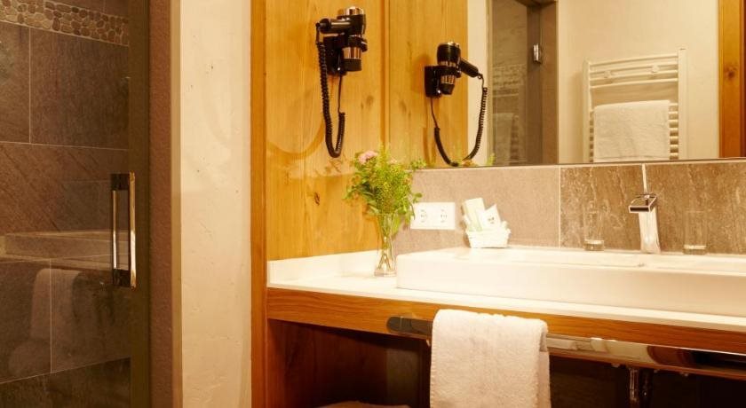 Spend an evening in a nice atmosphere of the bar. Taste the local cuisine and have a rest in the restaurant. Free Wi-Fi is available on the territory. Ask for more information when checking in. If you travel by car, you can park in a parking zone for free..The beauty and wellness services: a massage room, a sauna and a steam bath. The following services are available At the hotel for winter sports fans: a skiing area, a ski transfer, ski facilities rental, ski-to-door access and ski passes. You won’t be bored as at the hotel you will find a library. Here, you can treat yourself with water procedures as there will be a pool..For participants of business meetings, there is a conference hall. To book an excursion, consult the tour assistance desk of the hotel. Take your pet with you. Pets are allowed. For the free movement around the city, the hotel offers a transfer for you..Accessibility: there is an elevator/lift. At the guests’ disposal, there’s also a laundry, ironing and a safe-deposit box. The staff of the hotel will be happy to talk to you in English and German.