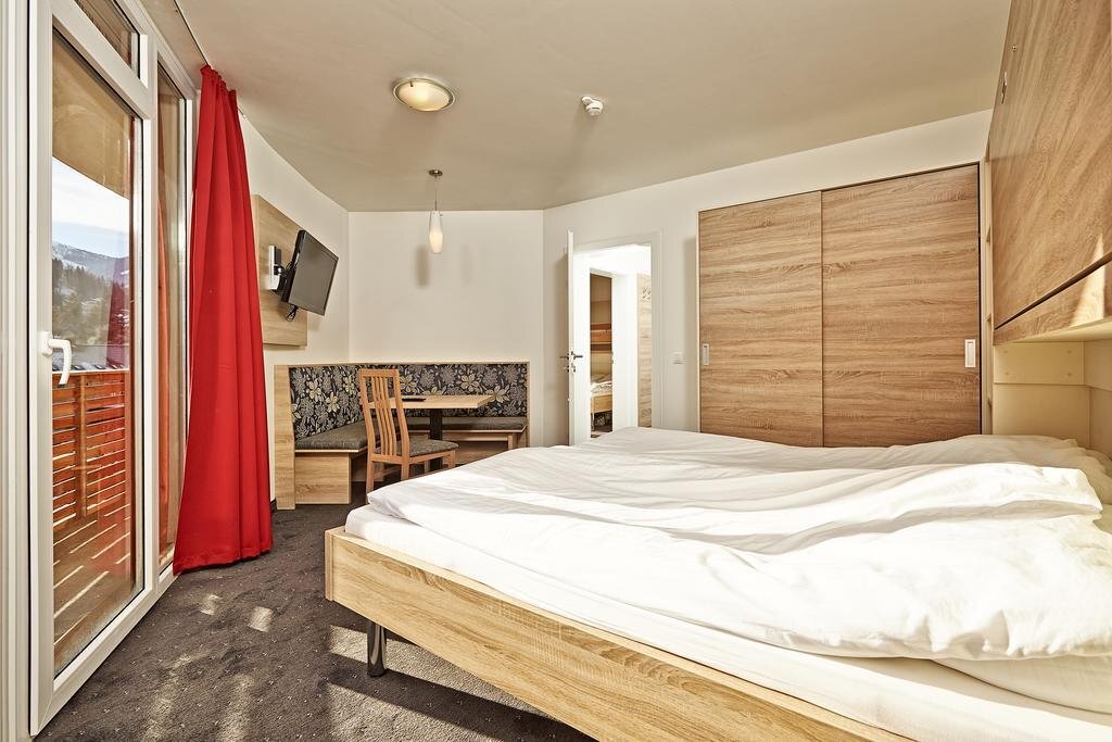 Spend an evening in a nice atmosphere of the bar. You can stop by the restaurant. Want to be always on-line? Wi-Fi is available. Specially for tourists who travel by car, there’s a paid parking zone..Also, the following services are available for guests at the hotel: a massage room, a sauna and a steam bath. The following services are available At the hotel for winter sports fans: a skiing area, ski facilities rental and ski-to-door access. Here, you can treat yourself with water procedures as there will be a pool and an outdoor pool. Accessible for guests with disabilities: the elevator helps them to go to the highest floors..At the guests’ disposal, there’s also private check-in and check-out and a safe-deposit box. The staff of the hotel will be happy to talk to you in English and German.