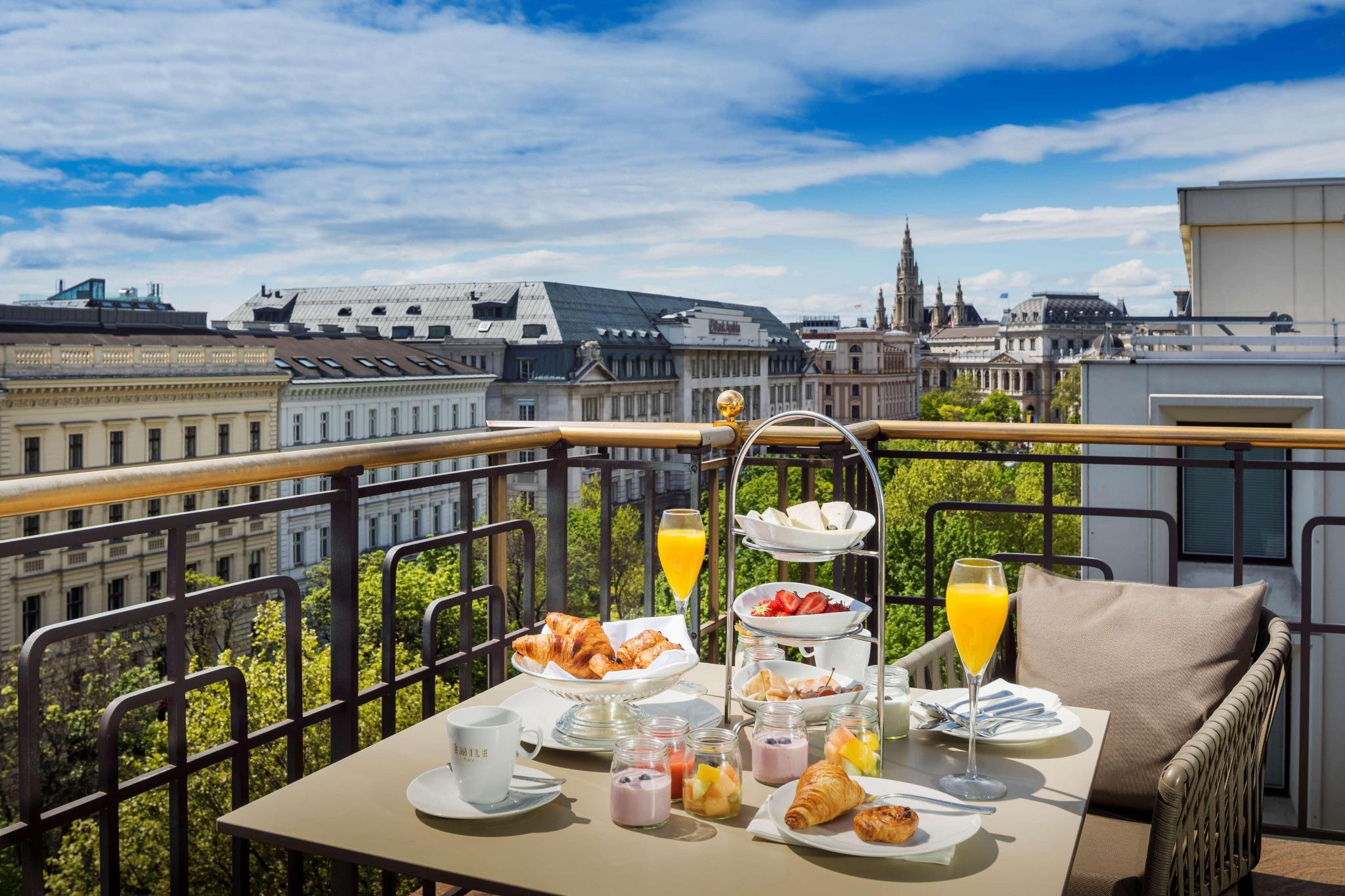 The hotel's exterior complements the architectural and ornamental features of the street and the city, including its facade, building height and golden brass railings. Inside, you'll discover the drawings, watercolors and art work by Austrian artists during 1850-1950.