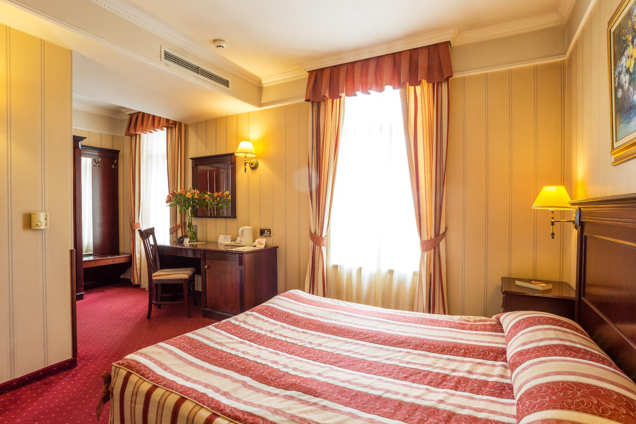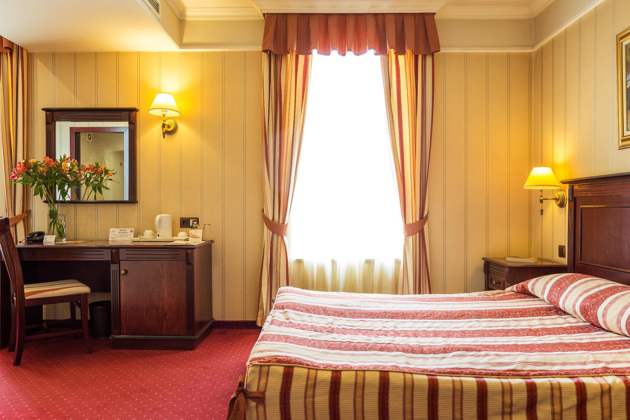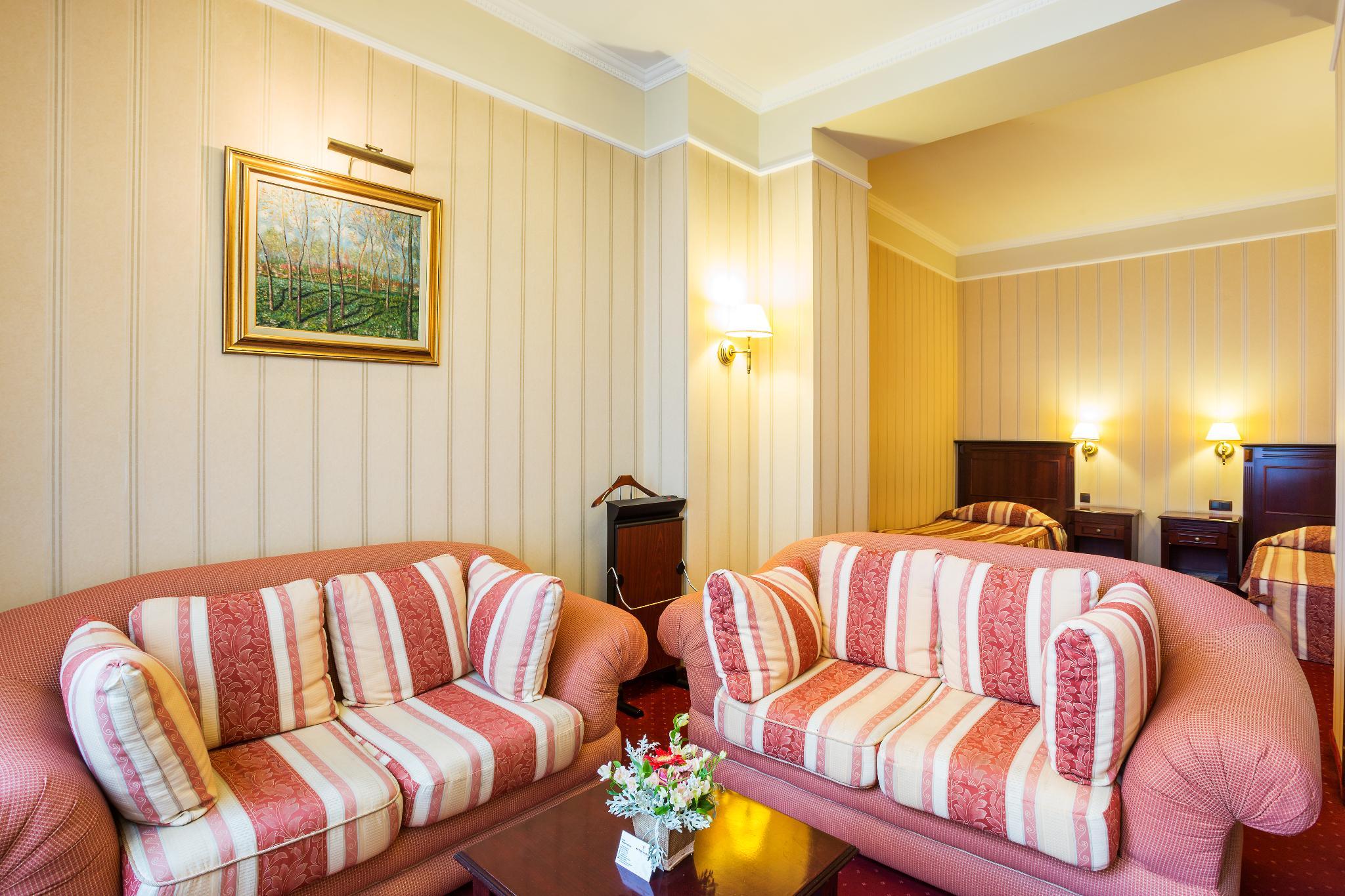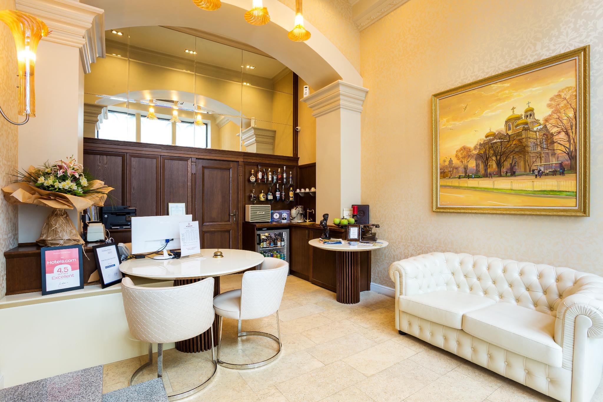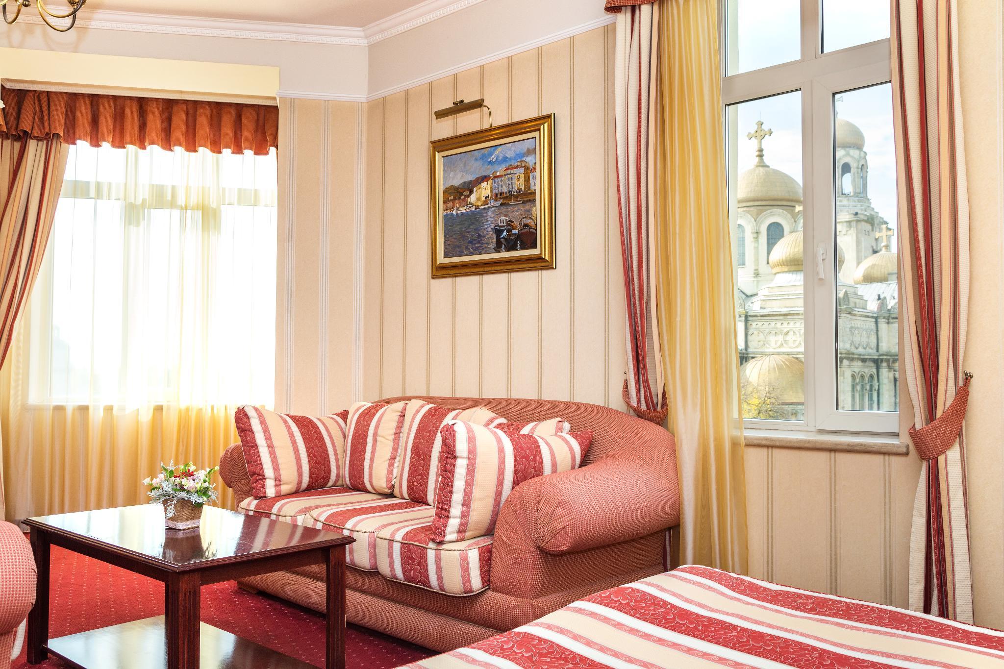 The hotel is situated close to Varna's tourist centre. The sea is about 1 km away. Built in 1910 and renovated in 2005, this air-conditioned hotel comprises a total of 28 rooms on 5 floors, including 4 suites and 4 apartments. Guests are welcomed in the lobby, where there is a 24-hour reception, a currency exchange and a cloakroom. Dining options include a cafe, a bar, and a restaurant with a separate non-smoking area and highchairs for infants. Conference rooms are on offer for business travellers. Room and laundry services are also available. Guests arriving by car may use the hotel car park. The stylish rooms all come with an en suite bathroom with hairdryer, a direct dial telephone, satellite/ cable TV, and a radio. Further fittings include a minibar, an iron and ironing board, a hire safe, and centrally regulated air conditioning and heating