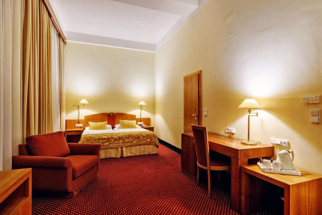 Your vacation should be comfortable! Hotel «Grandhotel Brno» is located in Brno. This hotel is located in the city center. In the morning, have a cup of coffee while looking at the city from the window. You can take a walk and explore the neighbourhood area of the hotel. Places nearby: Capuchin Monastery, Zelný trh Underground Labyrinth and Cabbage Market.