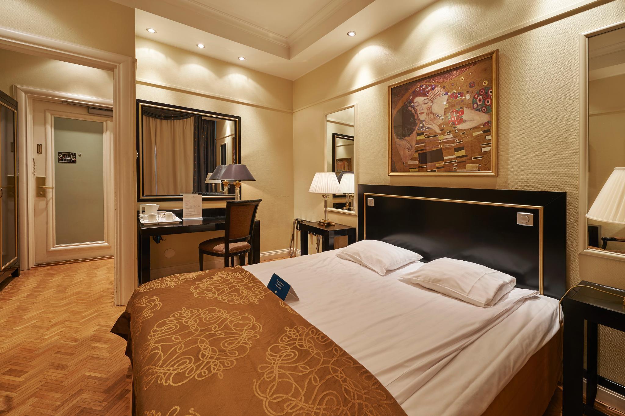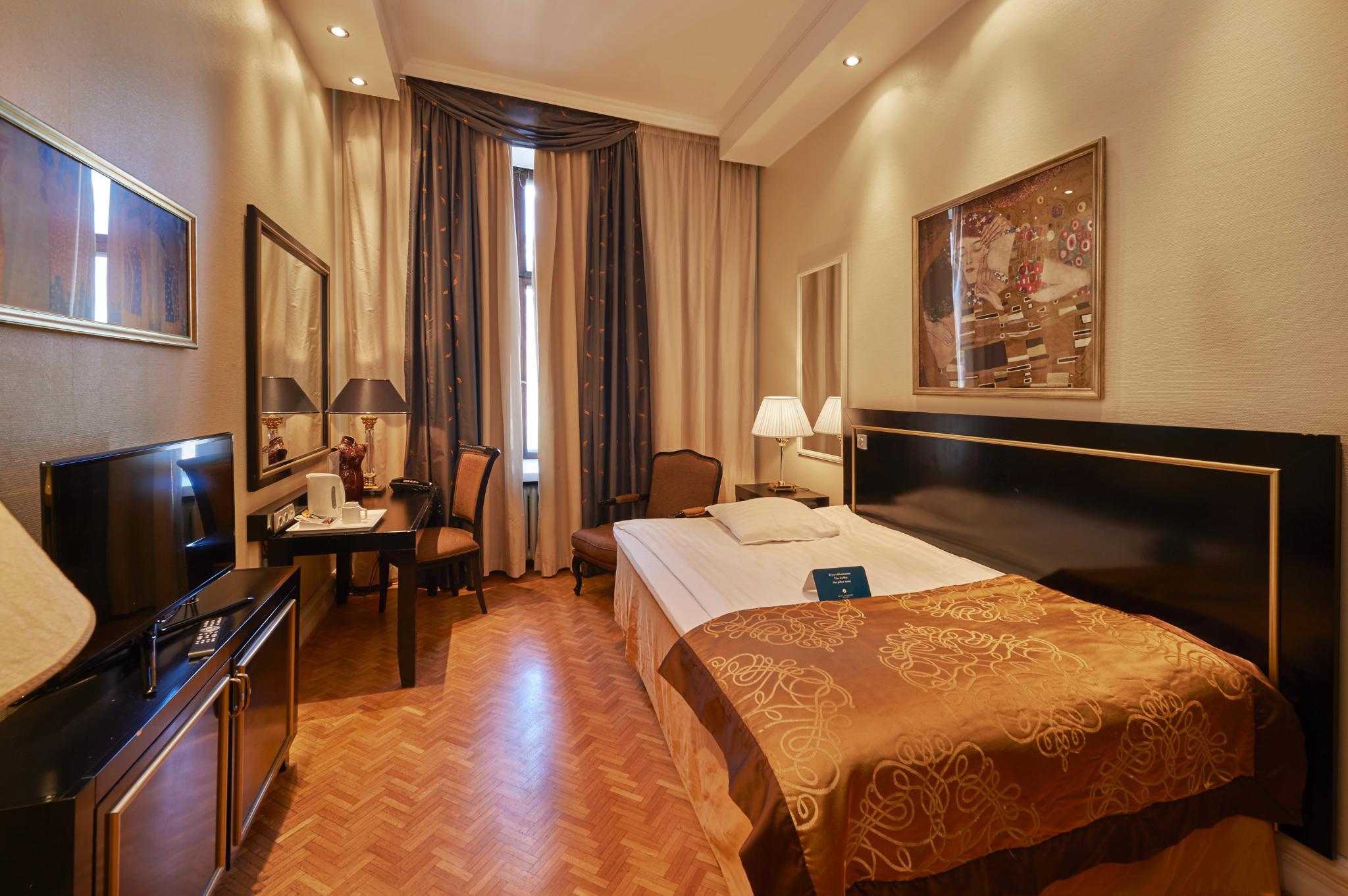 THIS 4 STAR HOTEL IS LOCATED IN THE CITY CENTRE OF HELSINKI AND WAS ESTABLISHED IN 1913. IT IS CLOSE TO THE HELSINKI AND THE NEAREST STATION IS RAILWAY STATION. THE HOTEL HAS A RESTAURANT, A BAR AND A CONFERENCE ROOM. ALL 110 ROOMS ARE EQUIPPED WITH MINIBAR, HAIRDRYER, SAFE AND IRONING SET.
