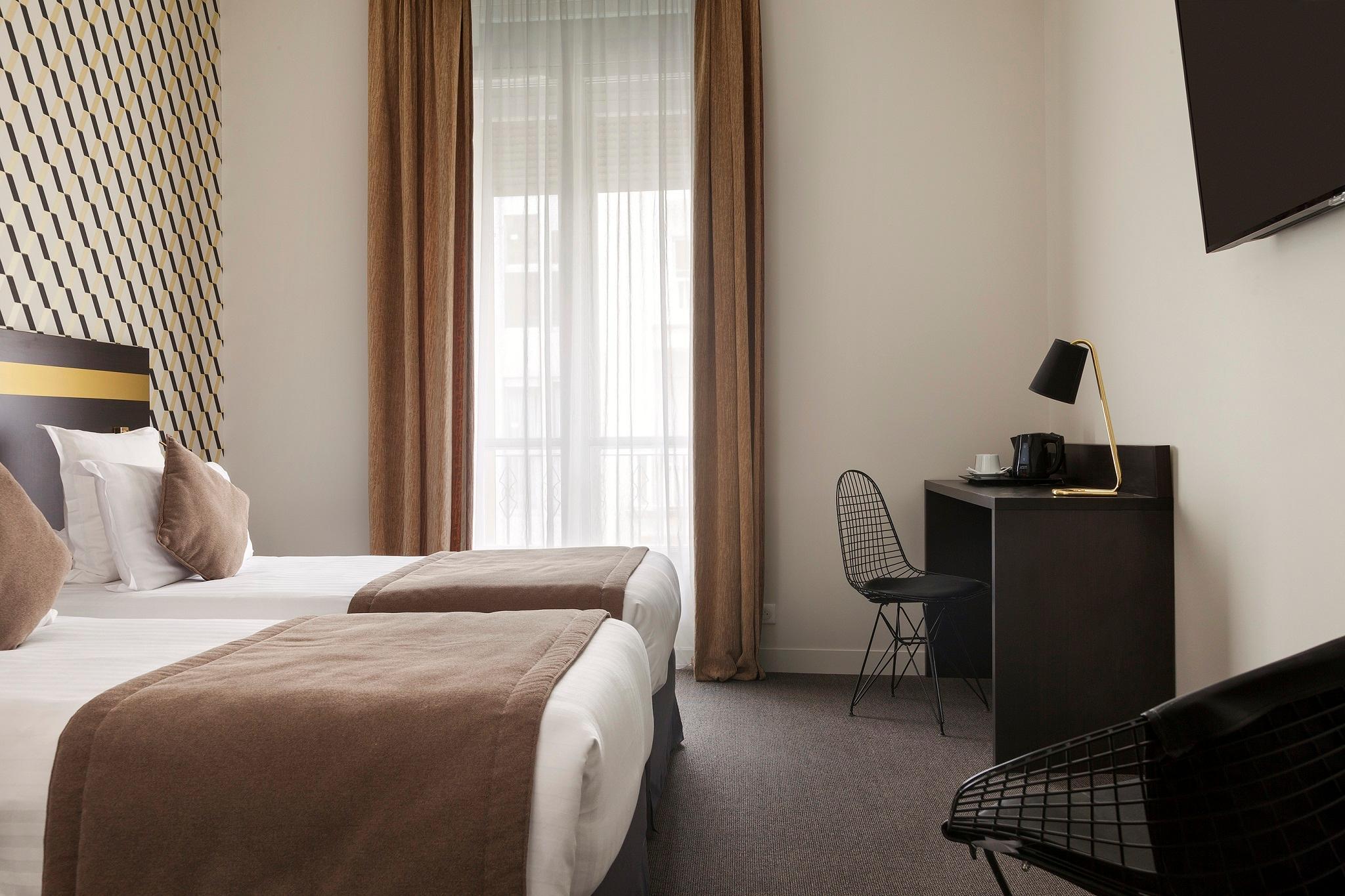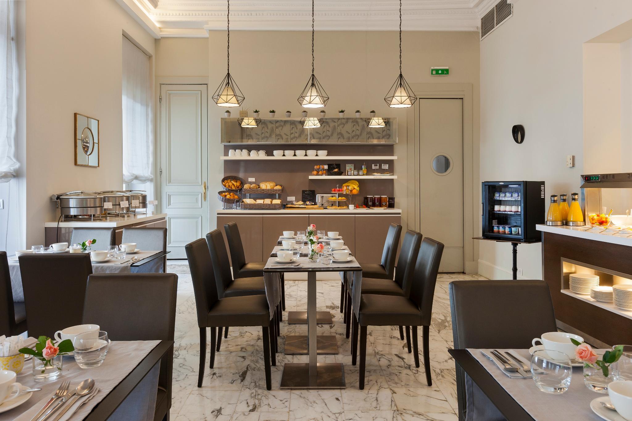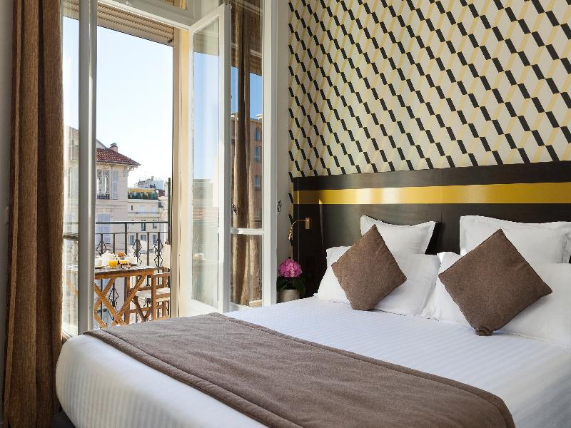 Guests will enjoy this hotel situated in an exceptional location between the sea and the mountains, to discover all the riches of the region. Completely renovated in January 2016, is ideally located in the heart of Nice, near the old town, beaches and the famous Promenade des Anglais, the Gare de Nice is at approximately 700 metres and the Nice International Airport less than 10 minutes car drive. The hotel welcomes you for your leisure and business stays. Its historic faAade, located on the luxurious Victor Hugo Boulevard, the main street of the city, will attract the guests from the entrance. The hotel will seduce the guests with its warm atmosphere and its very chic Art Deco style revisited with the theme Gastby and its rooms that offer comfort and modernity equipped with air-conditioning and a modern private bathroom with hair dryer.