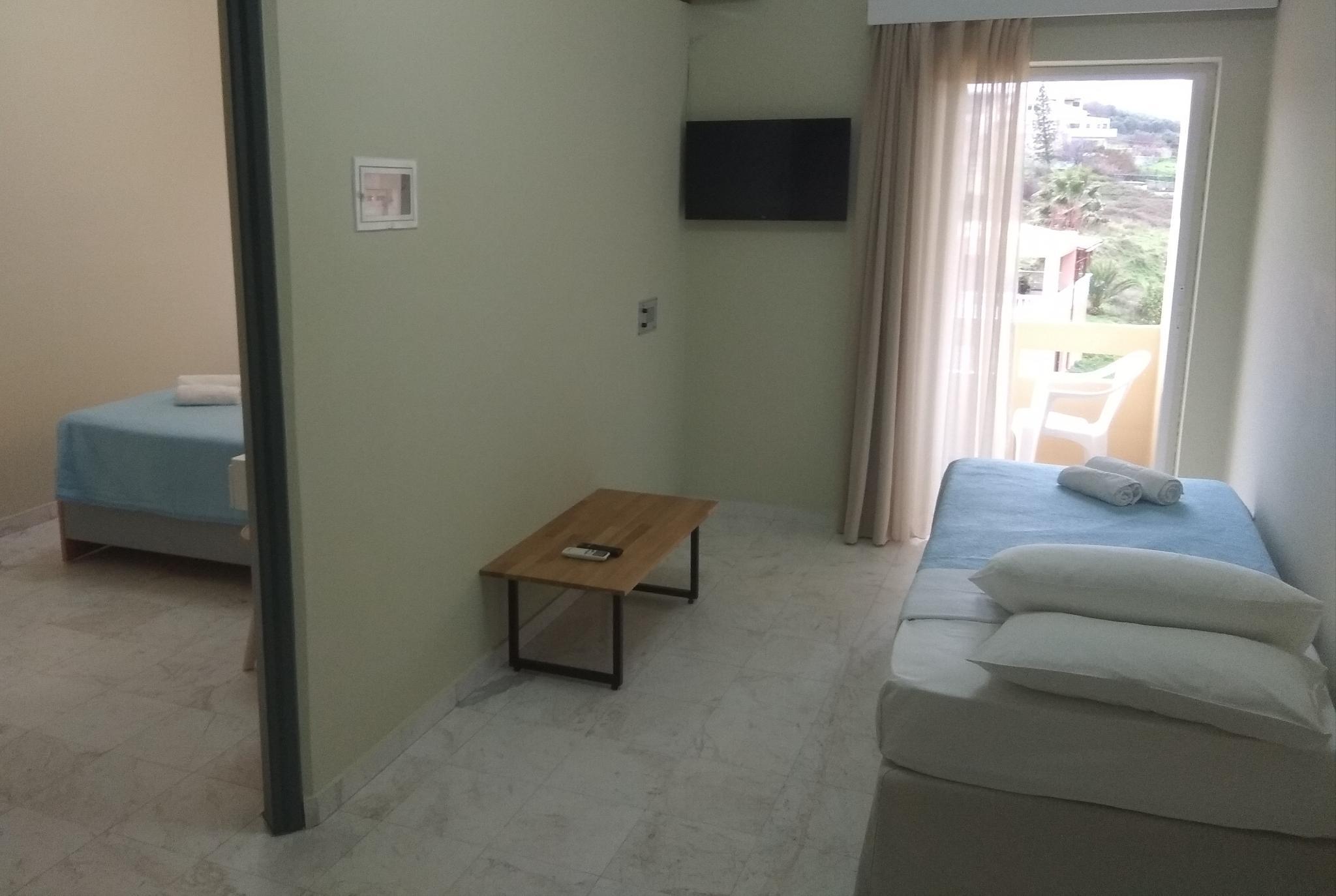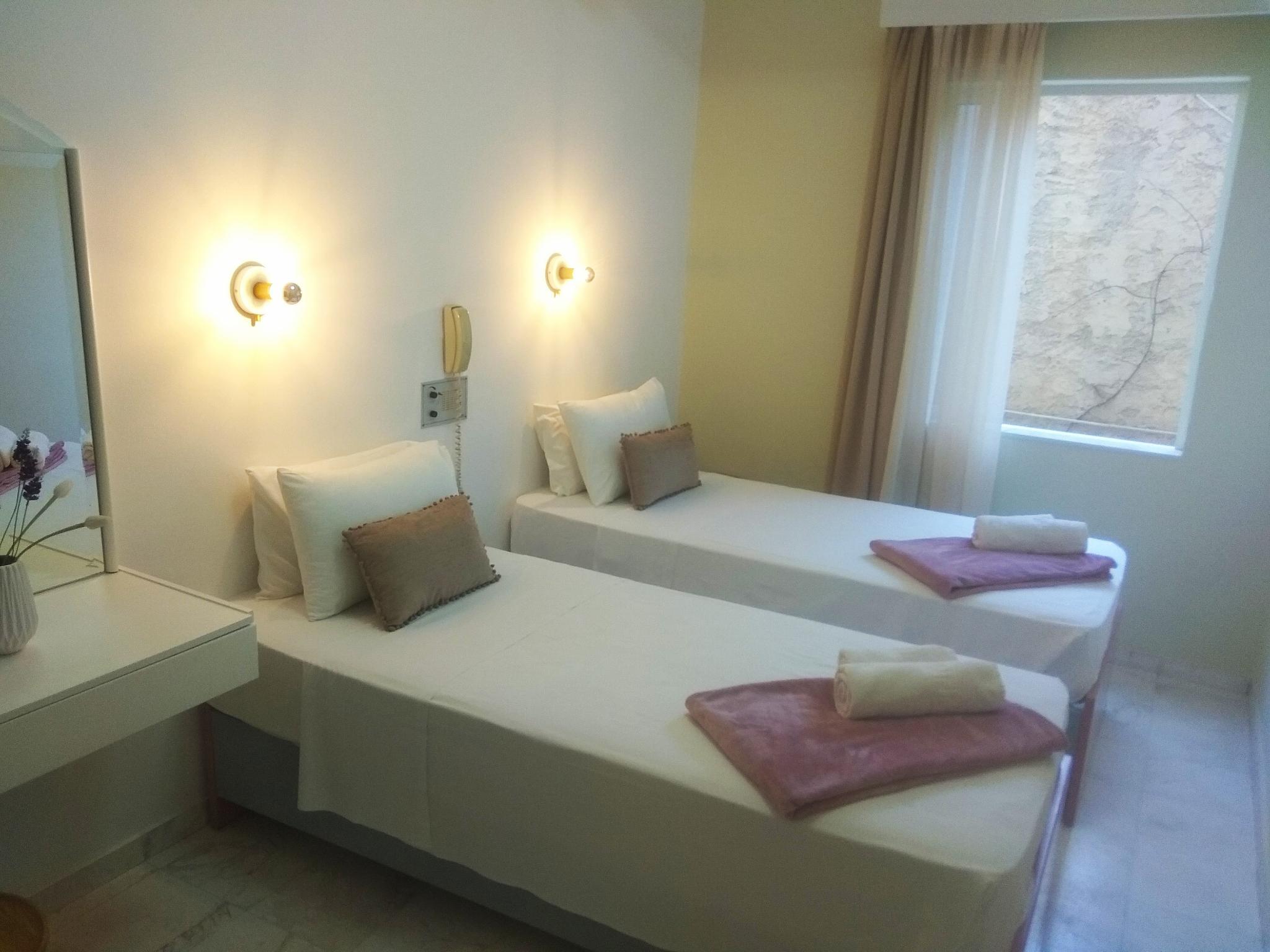 In all our rooms there is air-conditioning free, flat screen tv , safe deposit boxes with charge 1 euro per day, free wi-fi, balconies with sea or garden view. Psathi hill is 5' away from the clean and well organized beach of Stalos, either by foot from the path or the hotel's complimentary shuttle service.