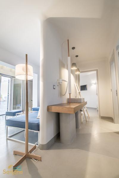 Santana is a superior complex on the beach which combines accommodation, beach club & restaurant, sun umbrellas, loungers right on the sand and Greek authentic hospitality. The resort is beautifully situated in Agia Anna just on the sandy beach and offers magic moments all day long.