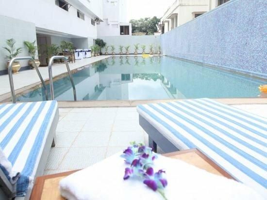 This 4 star hotel is located in the city centre of Bangalore. The Hotel has a coffee shop, an outdoor swimming pool and a fitness centre/gym. All 144 rooms are equipped with minibar, hairdryer, safe, ironing set and air conditioning.