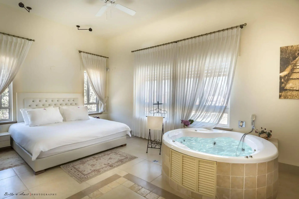 Looking for a place without the neighbors to worry about? Villa «Villar» is located in Rosh Pinna. This villa is located in the very center of the city. In the morning, have a cup of coffee while looking at the city from the window.
