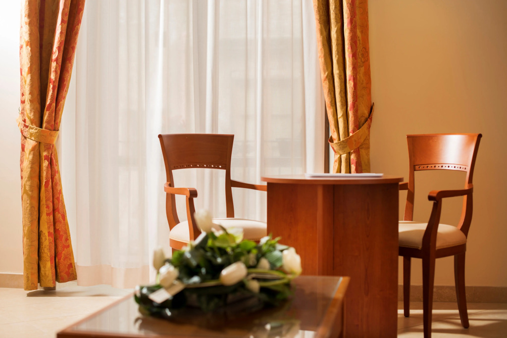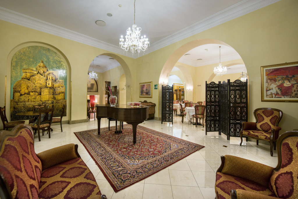 Spend an evening in a nice atmosphere of the bar. Taste the local cuisine and have a rest in the restaurant. Free Wi-Fi is available on the territory. Ask for more information when checking in. Specially for tourists who travel by car, there’s a parking zone..You will find these entertainment amenities on the premises: a library. Swimming fans are going to enjoy a pool. For business meetings, there is a conference hall. You won’t have to leave your pet at home as they are allowed for an additional cost..The staff of the hotel will order a transfer for you. Accessible for guests with disabilities: the elevator helps them to go to the highest floors. At the guests’ disposal, there’s also a laundry, dry cleaning, ironing, press and car rental. The staff of the hotel speaks English, Italian and German.