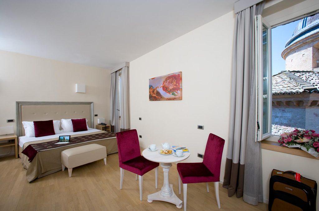 The Hotel 'Dei Priori' is an historical building dating back to the 16th century (around 1570). The hotel is situated in historic center of Assisi, very close to the most important and famous monuments of the city. 'S.Chiara' is only at 50 meters, the Basilica of San Francesco is about 350 meters while the Cathedral of San Rufino is just in the back of the hotel. All 34 rooms are equipped with private services, air conditioning, direct dial telephone and satellite TV. The fine restaurant is located on the underground level and offers both international and typical Umbrian cuisine. Continental grand buffet breakfast is also served in the restaurant. On their way down to the restaurant, their guests can admire a roman wall dating back to the II century. On the first floor a lovely reading room, with unique ceilings dating back to the 18th century, is available for meetings, or just for relax.