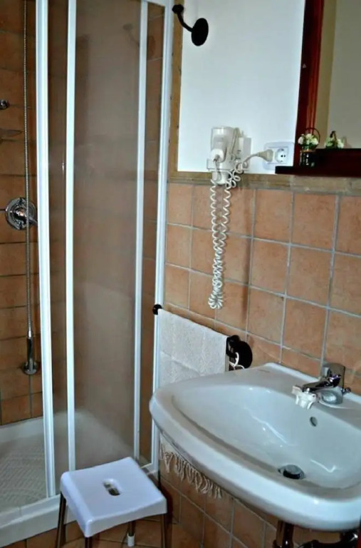 In the room, there is a shower. The room equipment depends on its category.