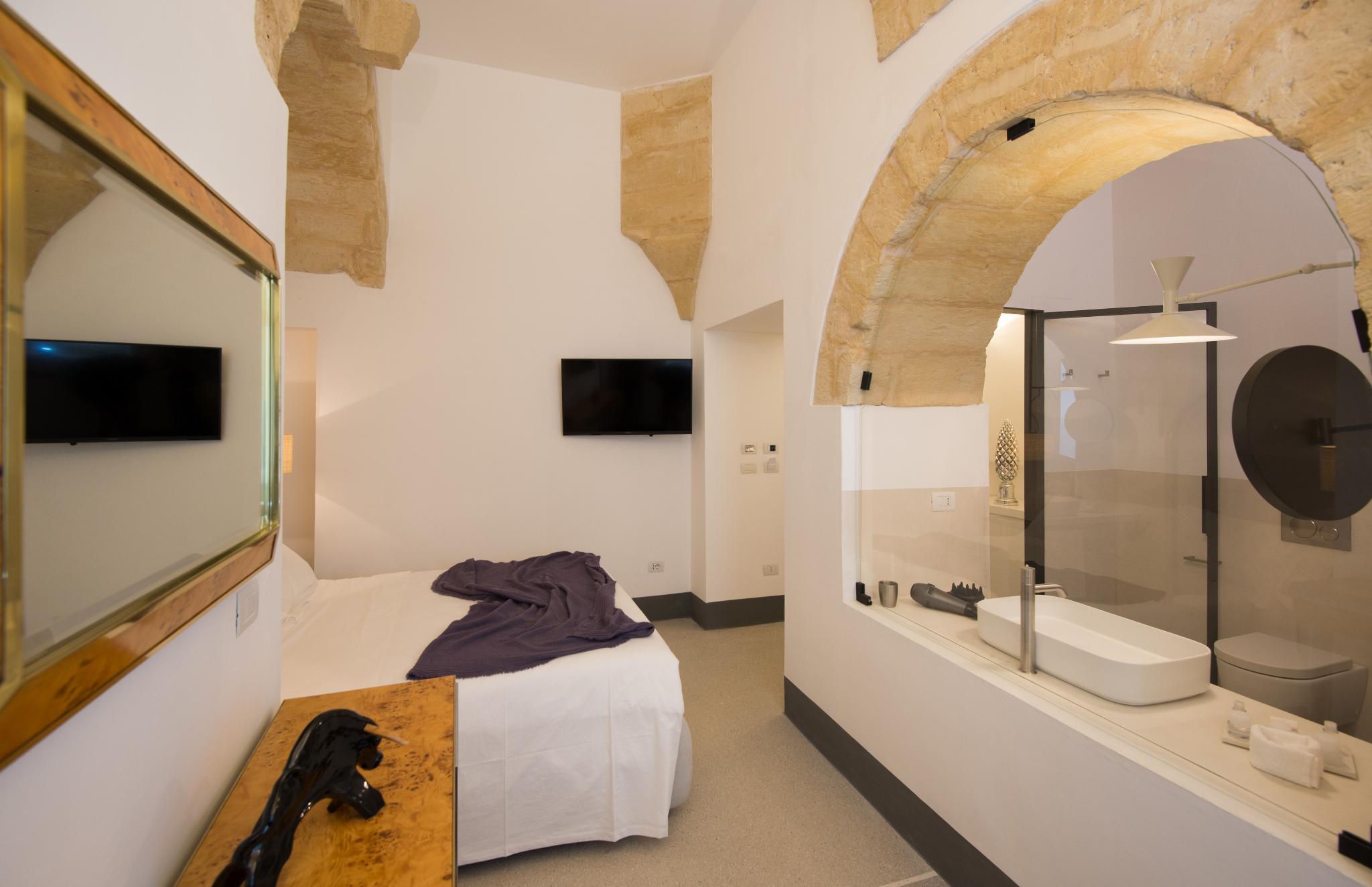 This lovely Hotel is set in Lecce. The guests will enjoy a peaceful and relaxing stay, as it counts with a total of 9 guests rooms in the main building and 3 in the annex building located in a small pretty courtyard. Palazzo de Noha is ideal for a productive stay, thanks to the Internet access available throughout. The reception desk is not open during the night. This establishment does not offer cots on demand. Guests with reduced mobility can stay at this wheelchair-accessible Hotel, which includes some disability-friendly units. This is not a pet-friendly accommodation. Visitors may take advantage of the car park. Palazzo de Noha may charge a fee for some services.