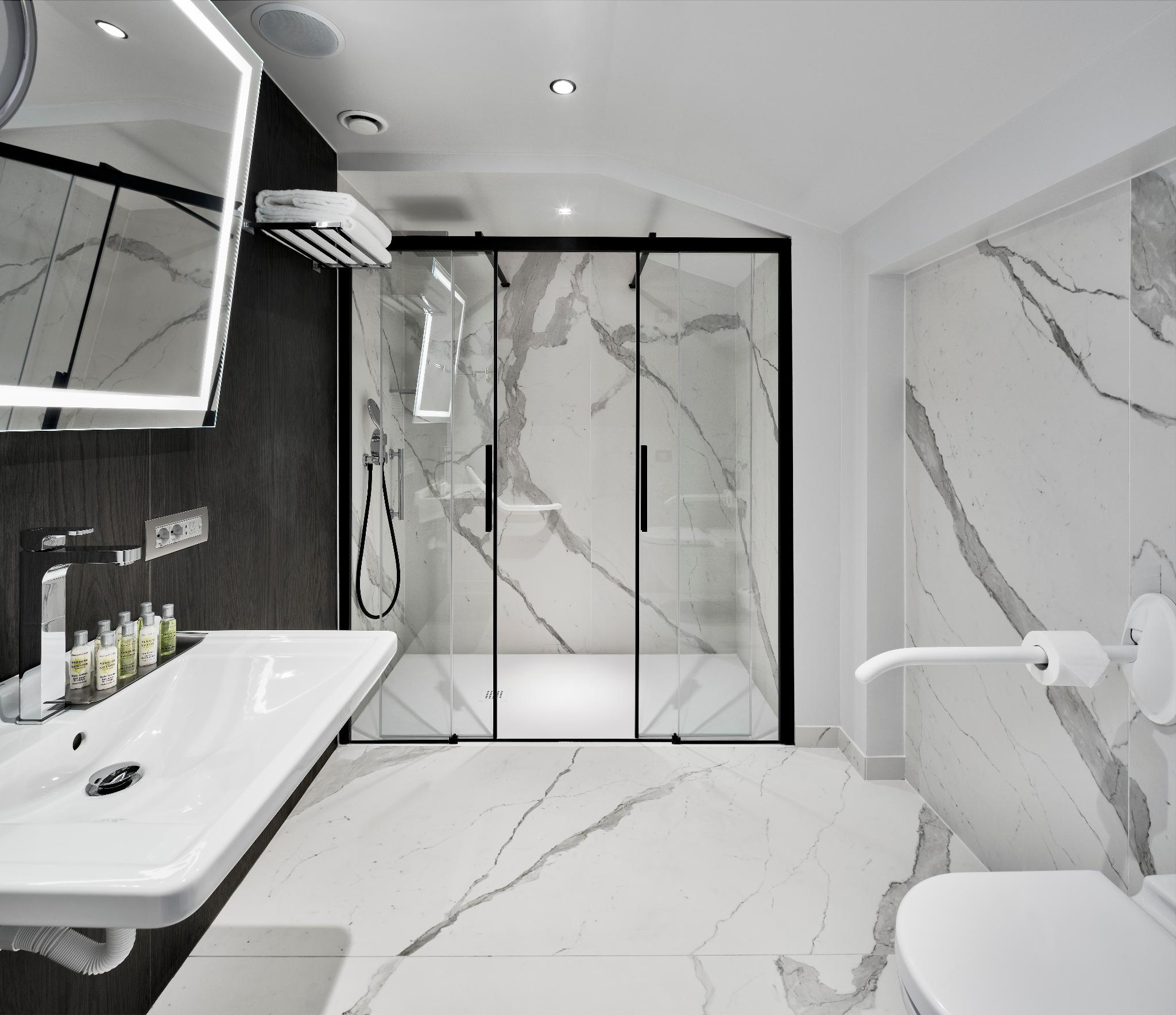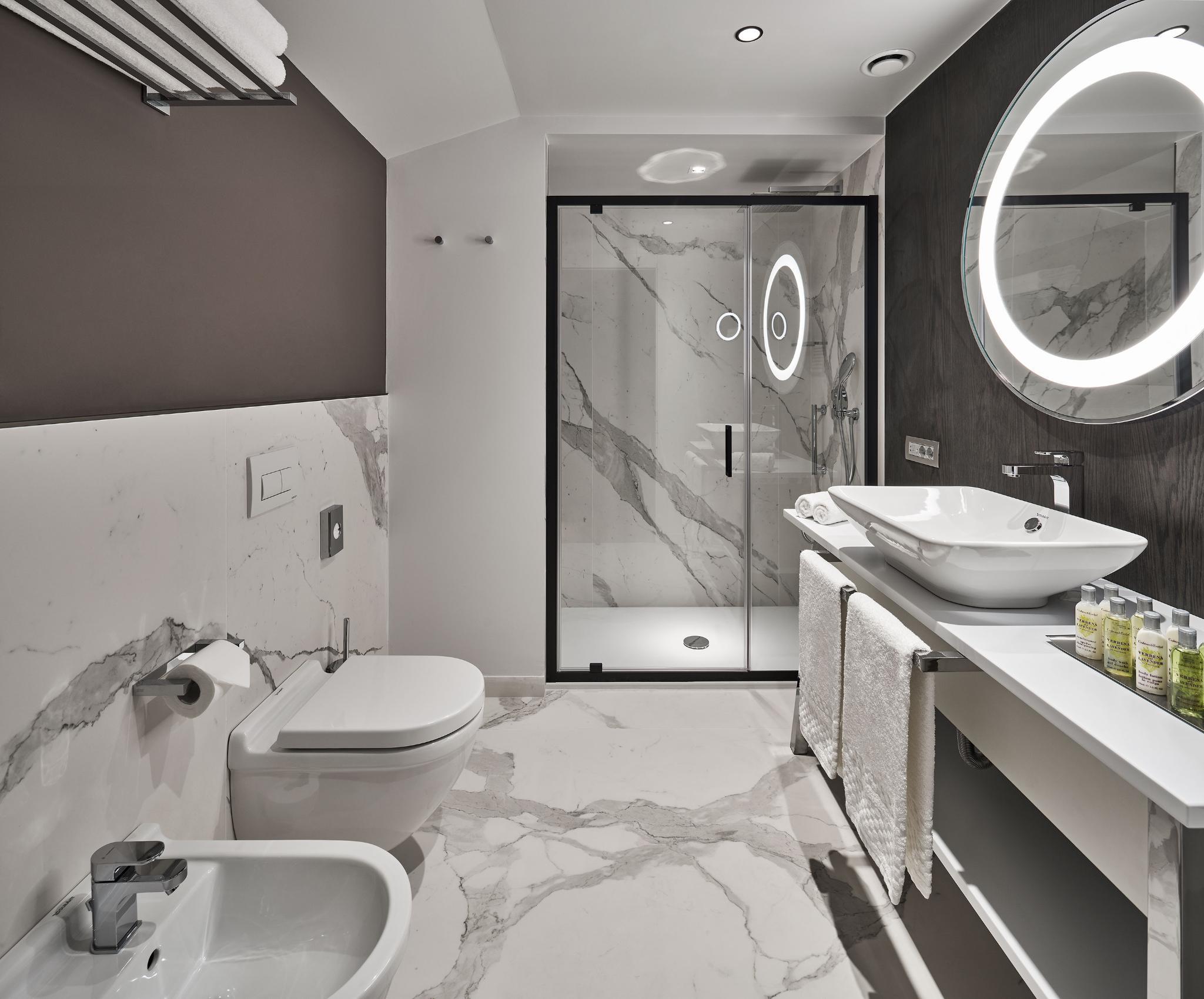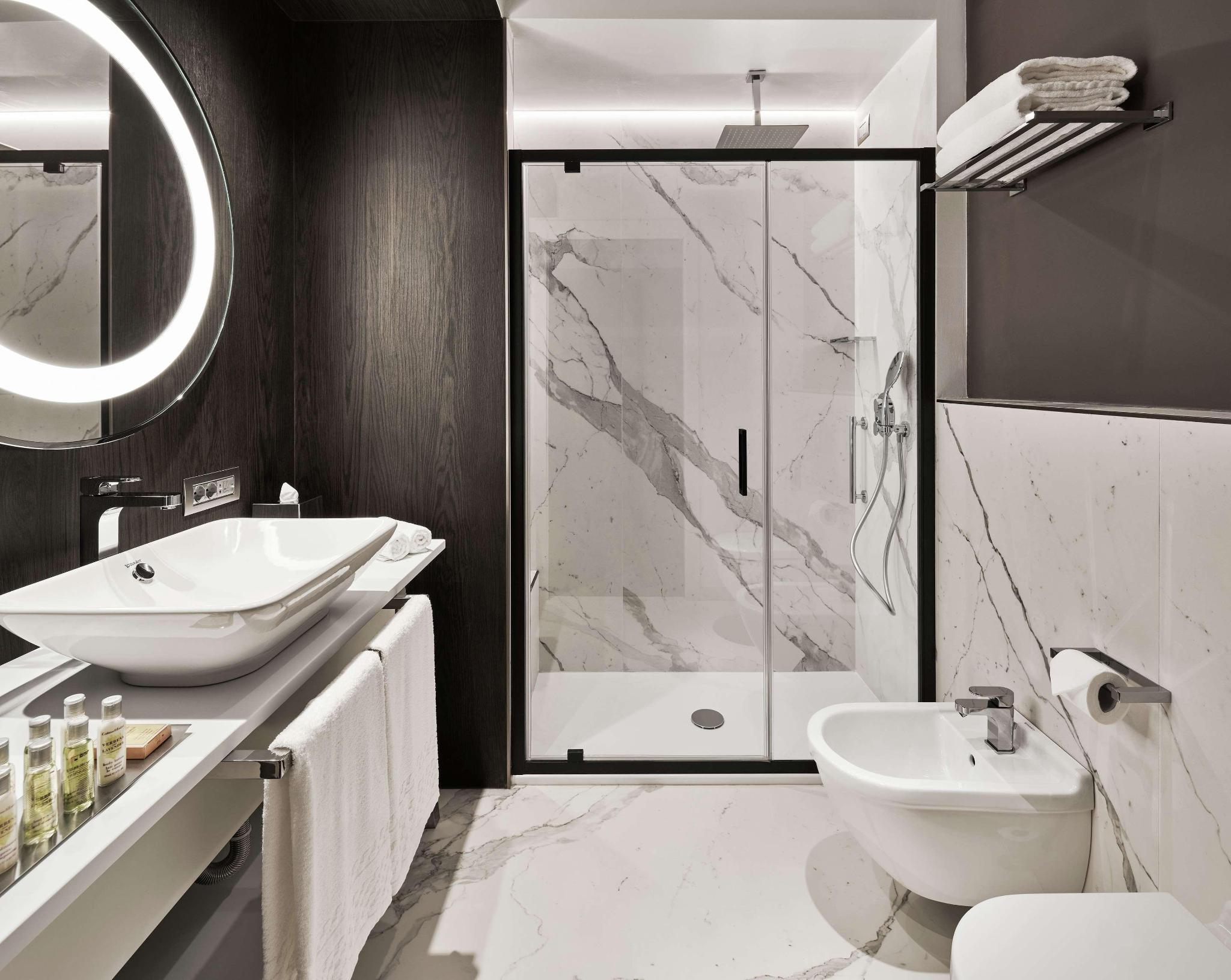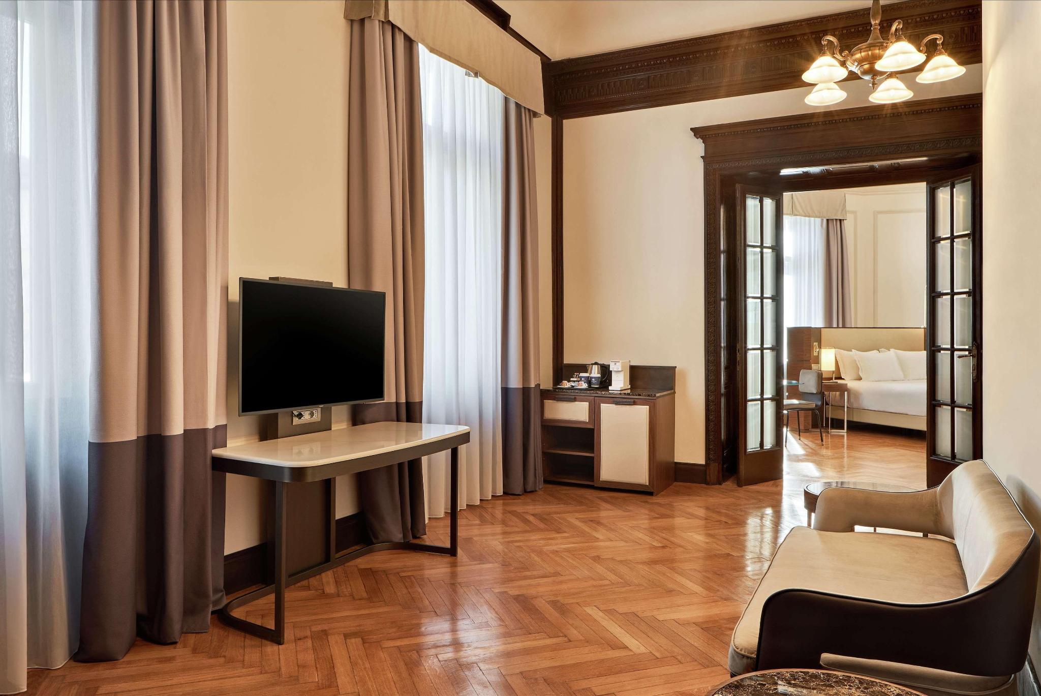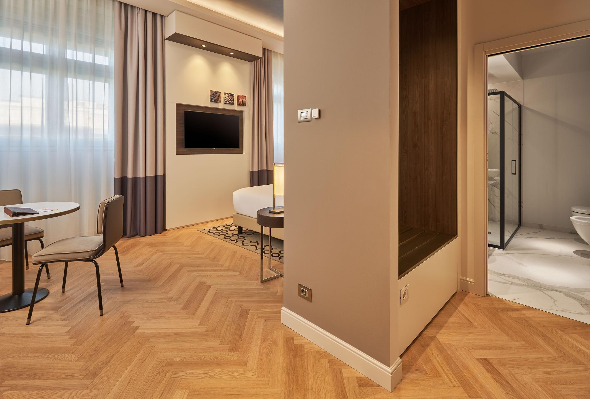 In addition to 125 rooms including 25 suites, distinguished by the fusion of the splendid original decorations and design touches implemented thanks to the recent renovation. Some of the rooms boast historic details such as fireplaces and windows, all restored to their pristine charm and splendor. The hotel is equipped with 6 multifunctional conference rooms. The main meeting room of the hotel - Sala Adriatica - hosts up to 90 people, the ideal location for work meetings and private events. Completing the services offered is a wellness and fitness area on the fourth floor, to meet the needs of each guest and always assure the maximum comfort.
