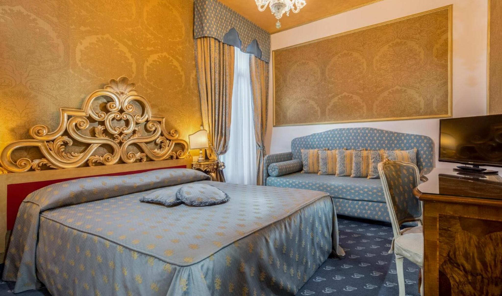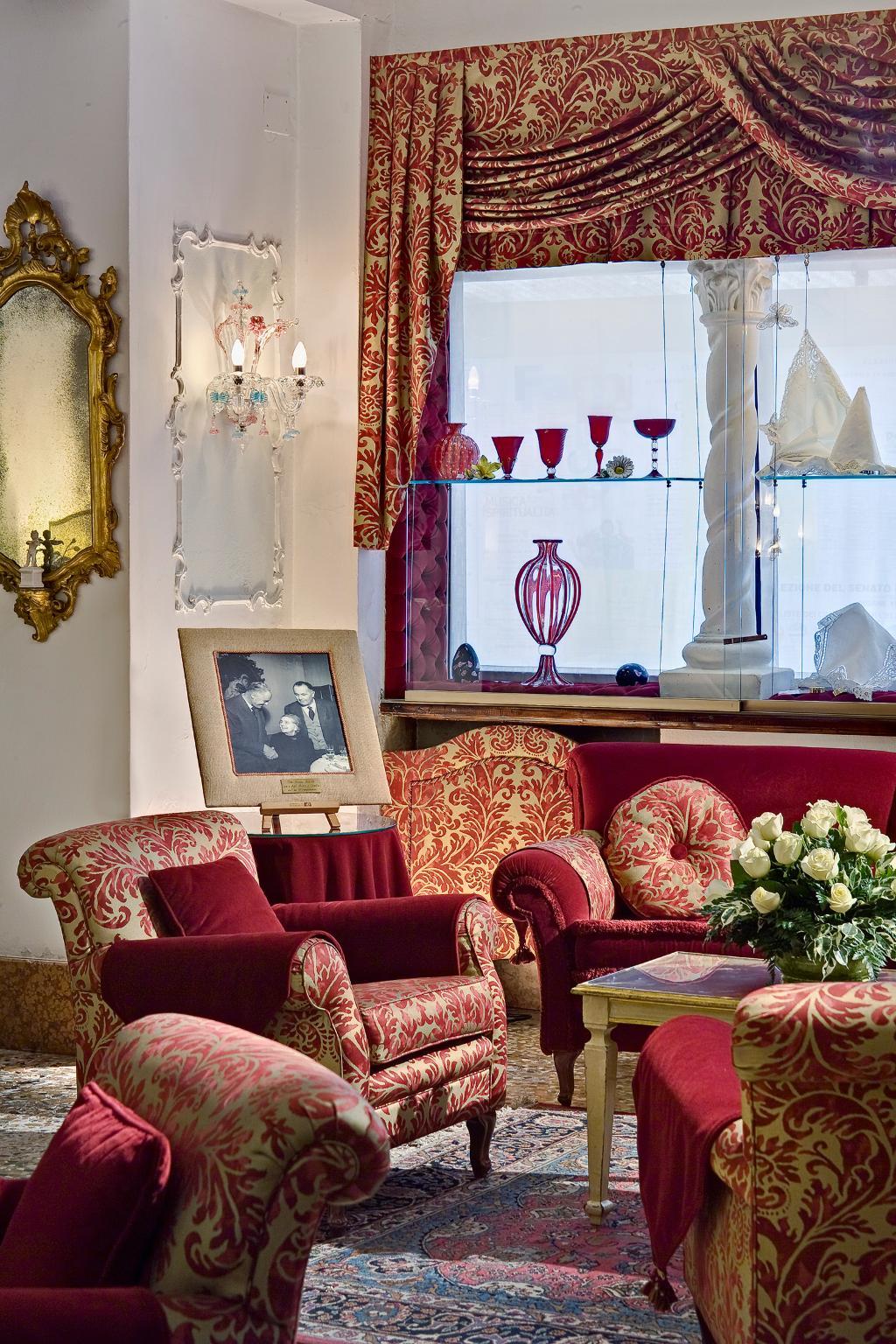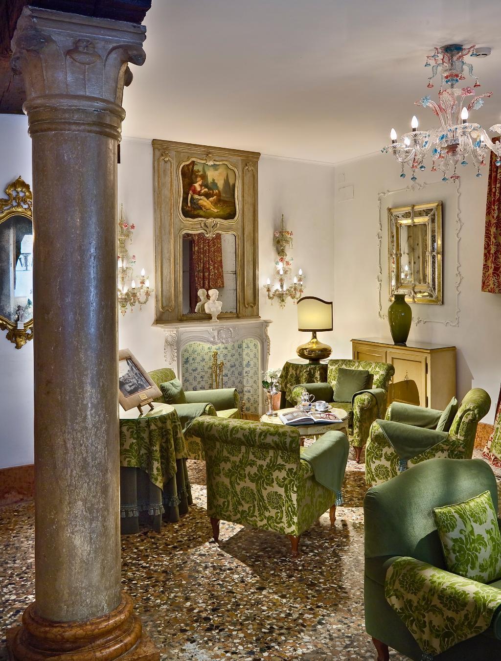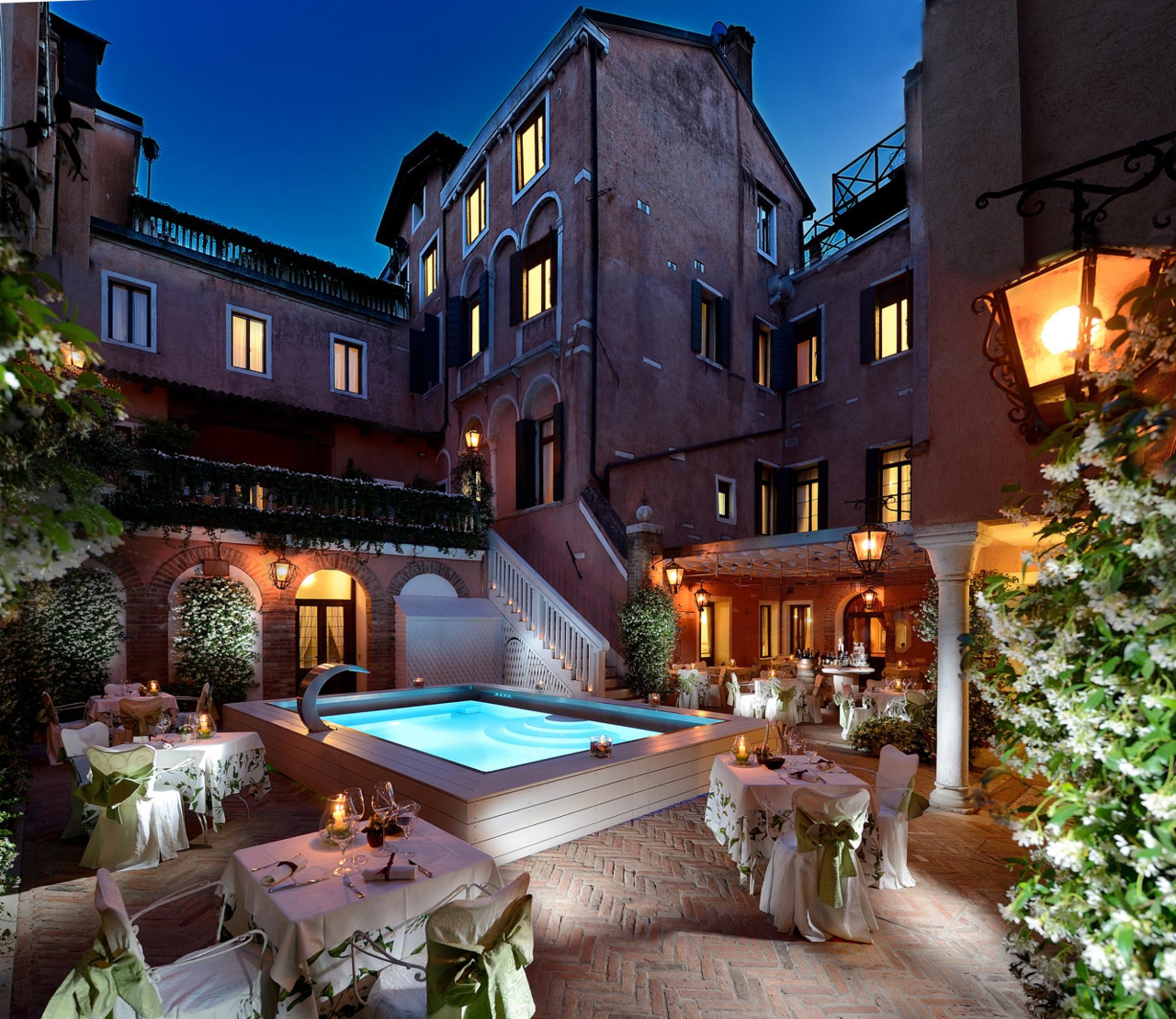 The hotel is decorated in a classic Venetian style with Murano glass chandeliers, and features a beautiful interior courtyard with a fountain, the perfect spot to have a late breakfast or a romantic candlelight dinner.